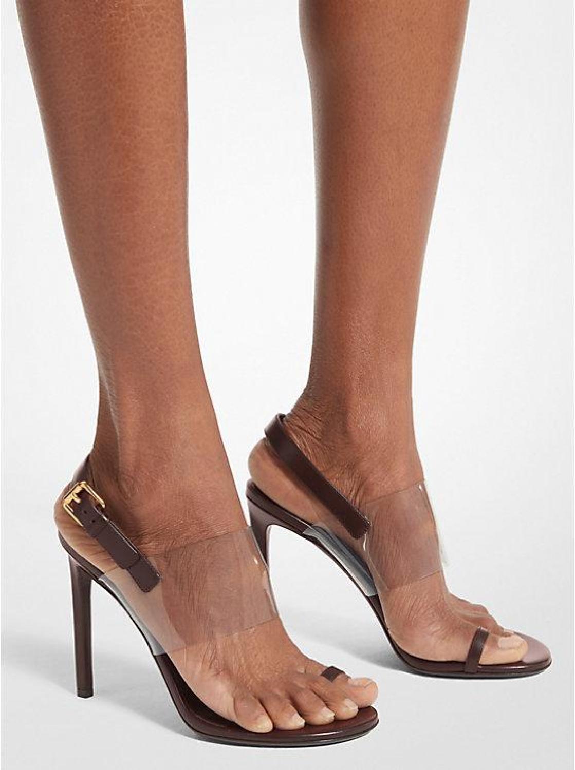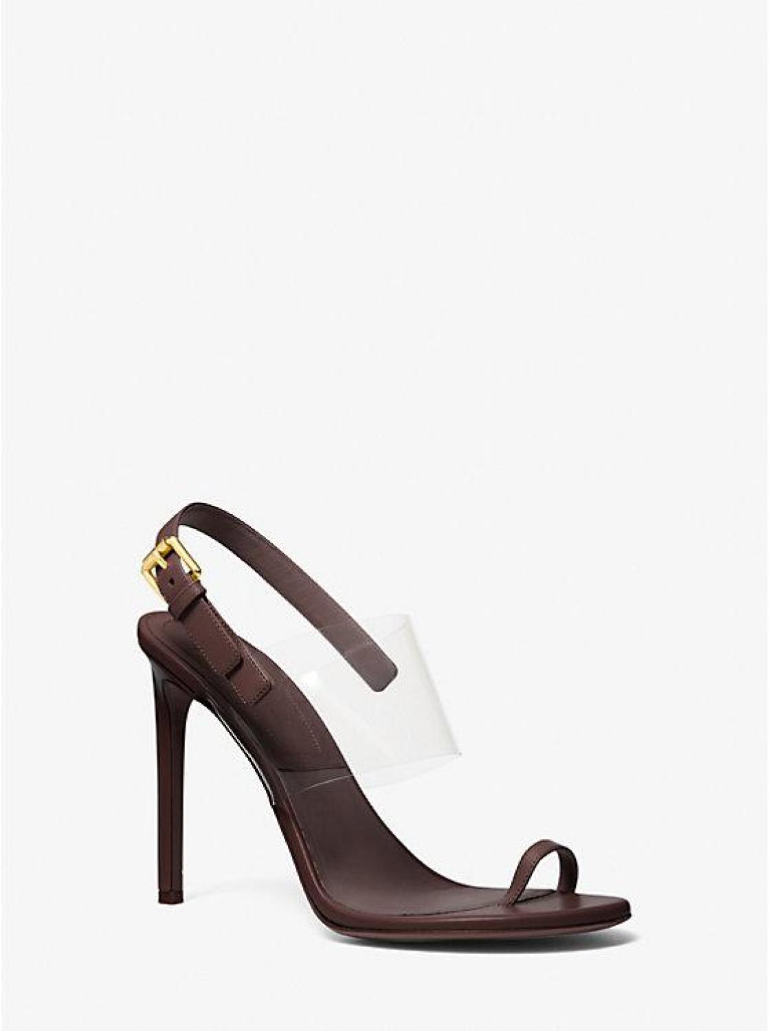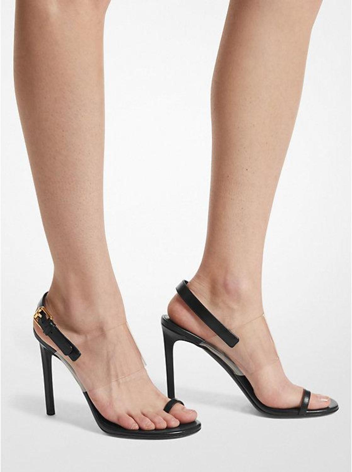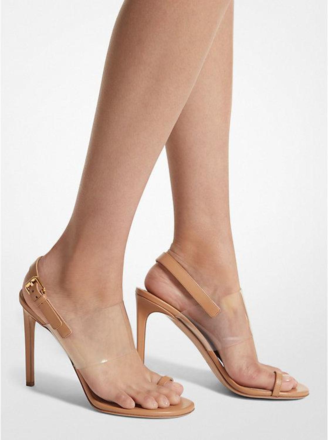 • Introducing Catherine: A minimalist sandal with modern appeal. Leather toe straps and a barely-there vinyl vamp give these heels a unique look, while a sharp stiletto heel adds a fierce finish. Available in a myriad of neutral colorways, this chic sandal will complement maxi dresses and tailored shorts alike.