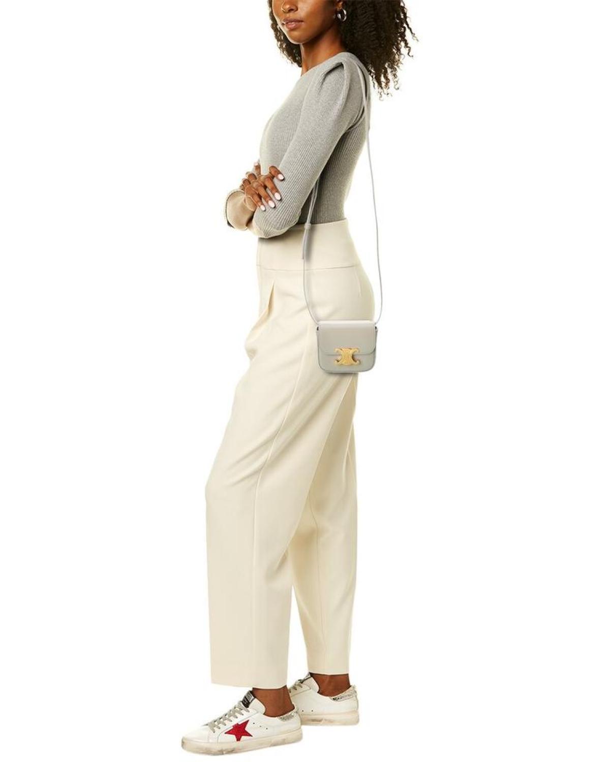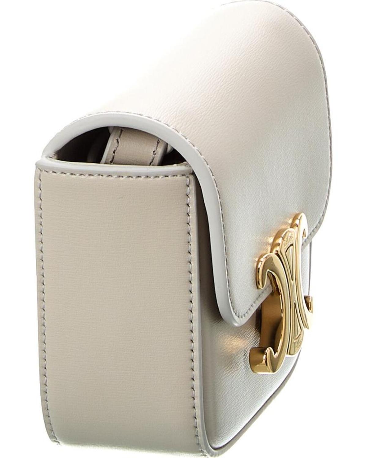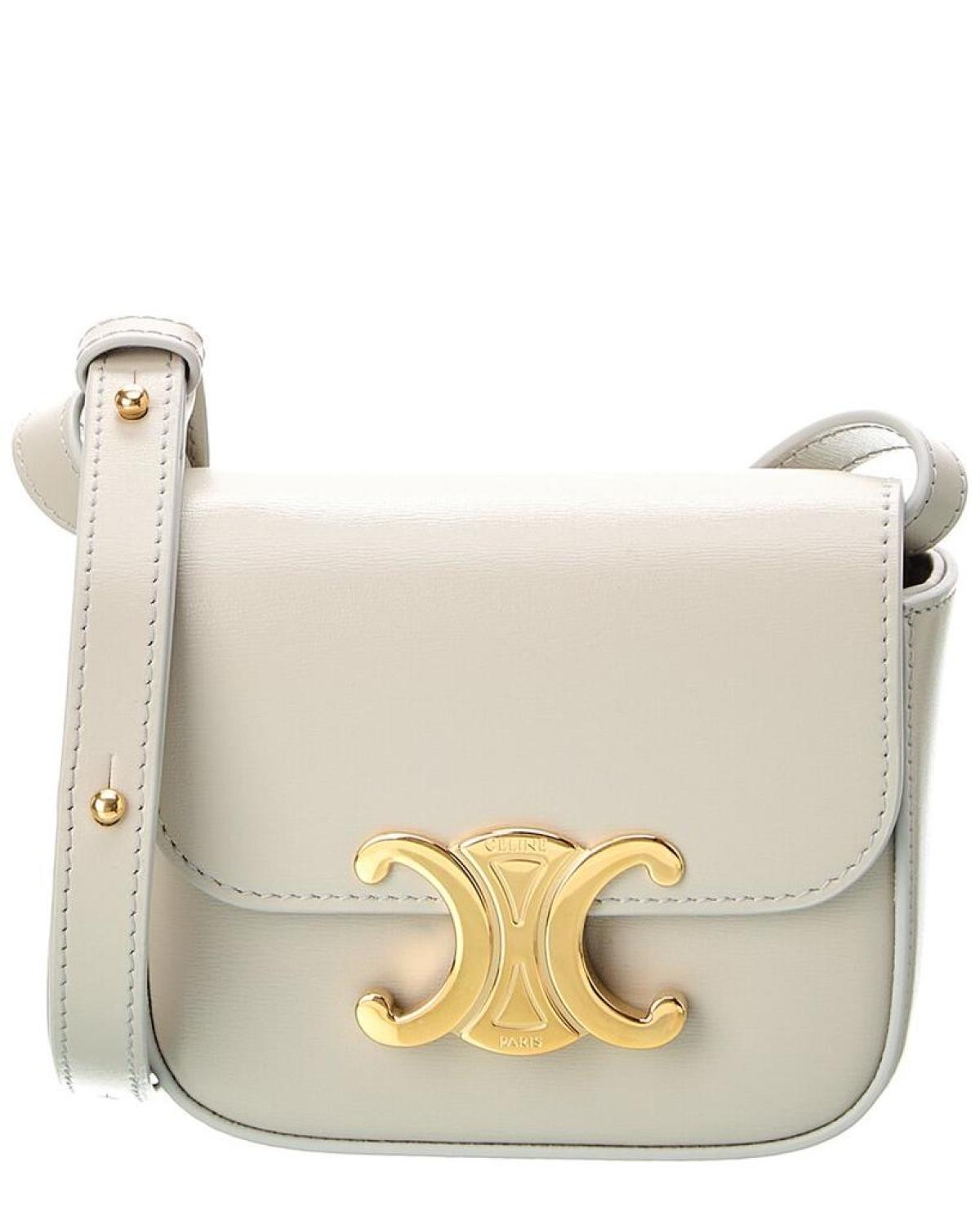 • Elevate your outfit with the luxurious CELINE Triomphe Leather Shoulder Bag. Crafted in Italy from light stone leather with gold-tone hardware, this iconic piece exudes Parisian chic. The interior features a practical flat pocket for all your essentials. The adjustable shoulder strap allows for versatile styling, while the fold-over flap with snap button closure adds a touch of sophistication. Please note that all measurements are approximate. Rest assured, this CELINE bag is 100% genuine, sourced from trusted suppliers to guarantee authenticity. Add a timeless piece to your collection with the CELINE Triomphe Leather Shoulder Bag.