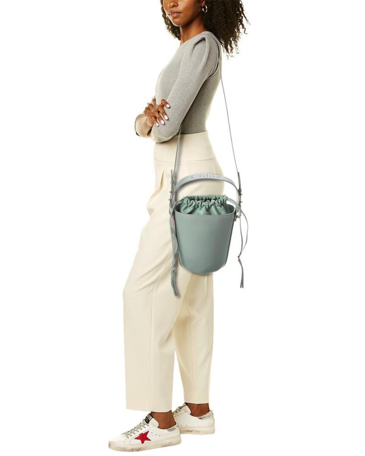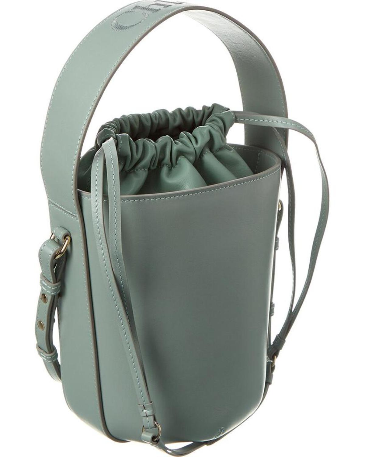 • Introducing the Chloé Sense Leather Bucket Bag, a must-have accessory for the modern woman. Crafted with attention to detail, this luxurious bag showcases the essence of the Chloé brand – romantic, cool, and glamorous.Made in Italy, this bucket bag is made from high-quality green leather and features exquisite gold-tone hardware, adding a touch of elegance to any outfit. The embroidered top handle adds a unique and eye-catching element to the design.Inside the bag, you'll find a spacious canvas lining and an interior pocket, providing ample space to organize your belongings. The bag measures 8.75 inches wide, 7.5 inches high, and 6.75 inches deep, making it the perfect size for everyday essentials.For versatility, it features a top handle with a 5-inch drop and an adjustable and removable shoulder strap with a 22-inch drop. Carry it by hand or wear it on your shoulder – the choice is yours. The drawstring closure ensures the security of your belongings while adding a stylish touch.Please note that all measurements were taken by hand and are approximate. Slight variations may occur, adding to the uniqueness and craftsmanship of each bag.Rest assured, our products are 100% genuine. In some cases, we purchase merchandise from trusted independent suppliers, ensuring the highest quality. We stand by the authenticity of every product sold on our site, including the Chloé Sense Leather Bucket Bag.Upgrade your handbag collection with this stunning Chloé creation. Order yours today and experience the timeless beauty and craftsmanship that Chloé is renowned for.