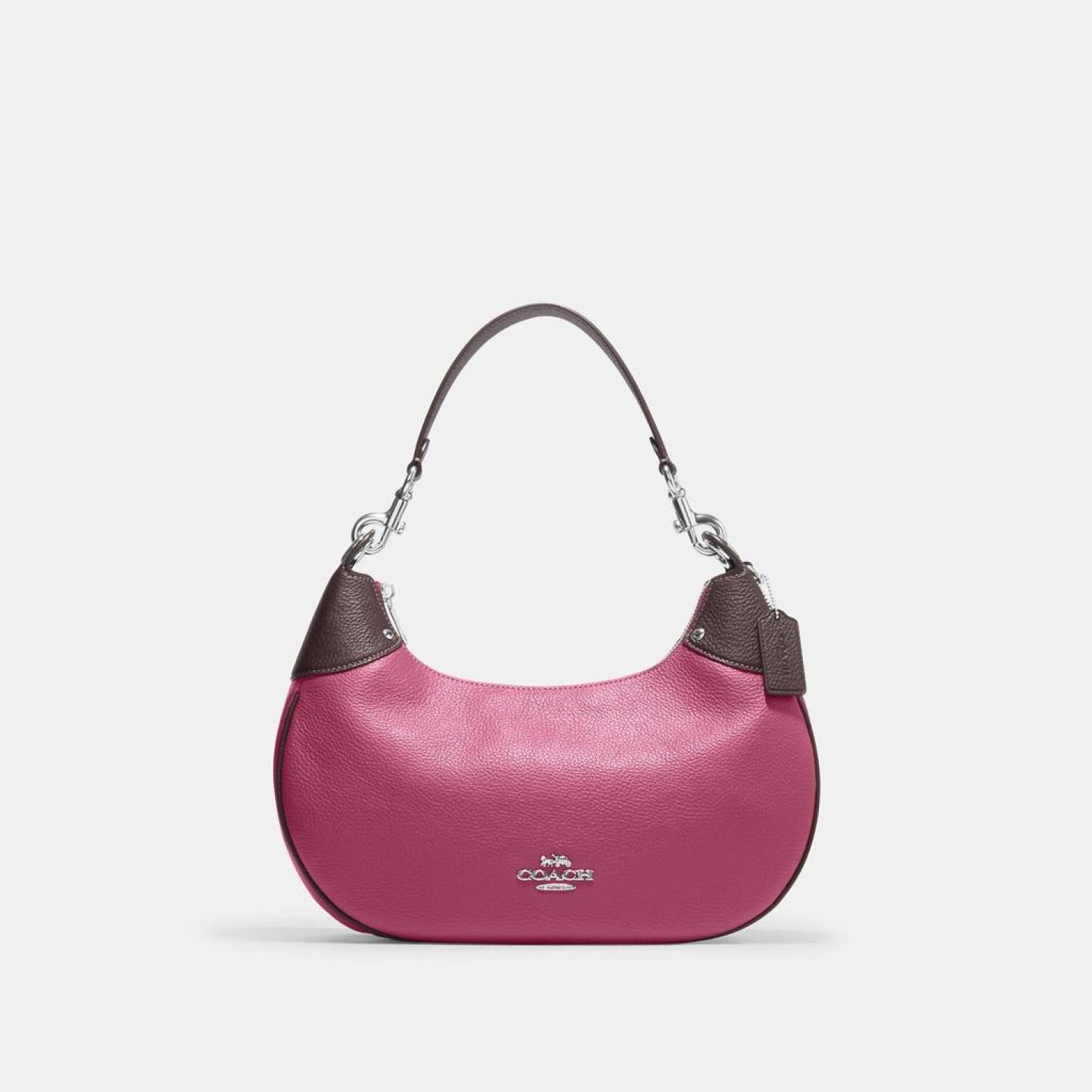Refined pebble leather Inside zip cell phone and multifunction pockets Zip top closure fabric lining Detachable handle with 9 3/4 drop Outside zip pocket Detachable strap with 21 3/4 drop for shoulder or crossbody wear 13 1/2 (L) x 7 (H) x 4 (W) Style No. CJ864 | Coach Outlet Mara Hobo - Pink