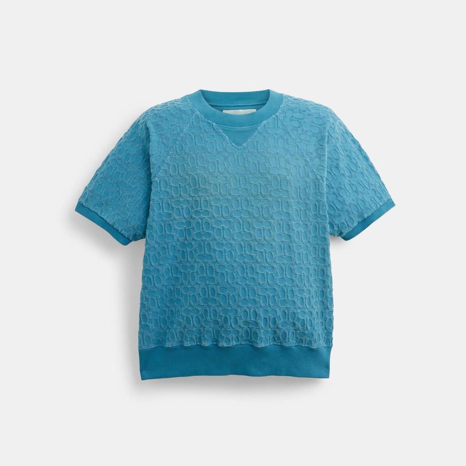 64% cotton 36% polyester Rib - 97% cotton 3% elastane Length - 26 1/4 Machine wash Model Steven is 6'2 (188cm) and wears a size M Model Grace is 5'10 (178cm) chest 31 (79cm) waist 24 (61cm) hips 35 (89cm) and wears a size S Style No. CJ888 | Coach Outlet Sun Faded Signature Sweatshirt - Blue, Size - X-Small