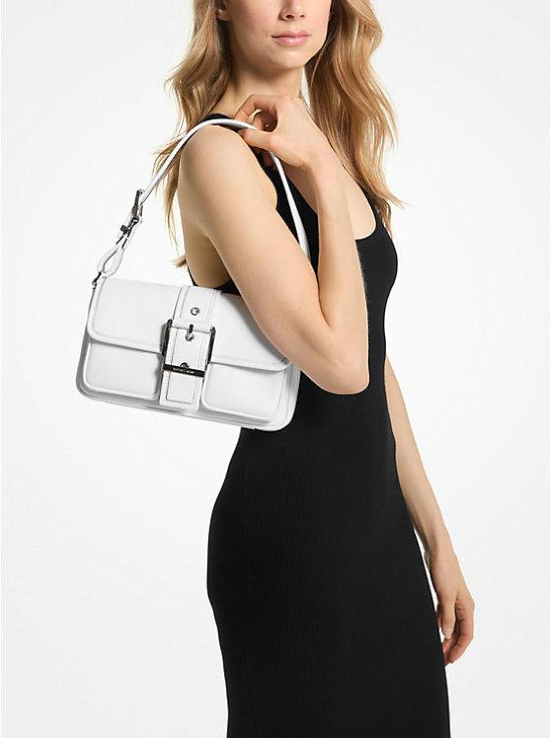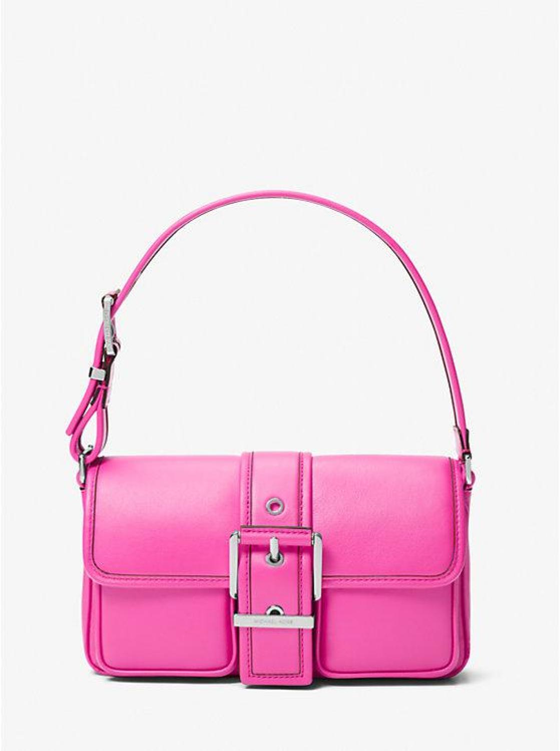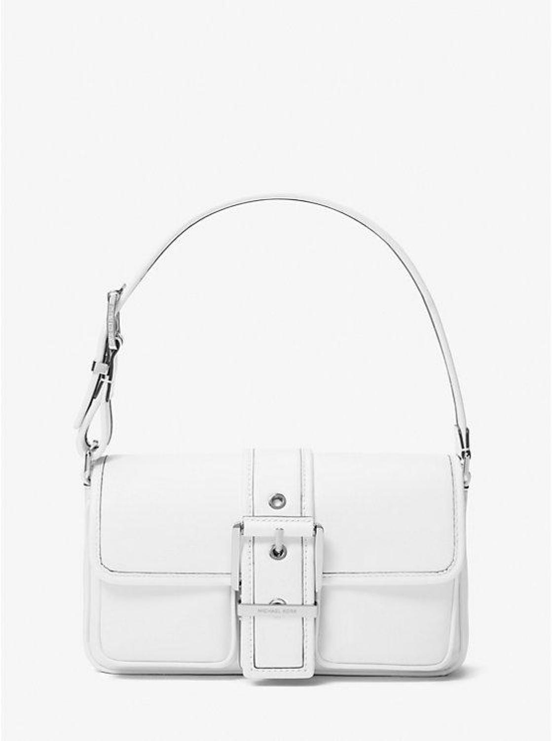 • The modern-yet-classic Colby shoulder bag evokes a cool, New York-inspired sensibility. With its sleek rectangular silhouette and bold buckle accent, this chic style is crafted from supple leather and designed to rest seamlessly under your arm. Match your jewelry to the silver-tone hardware.