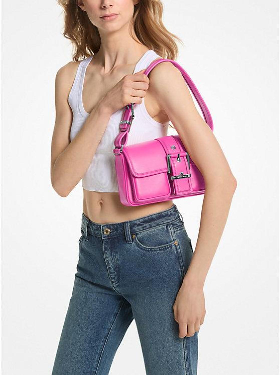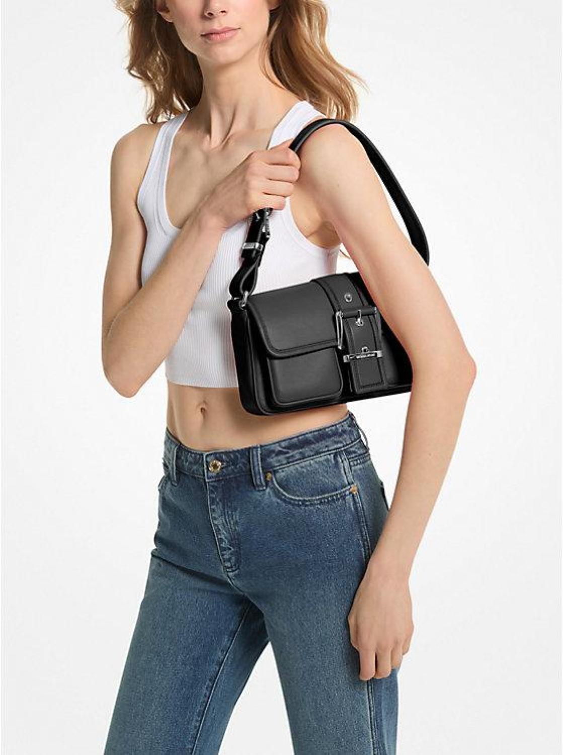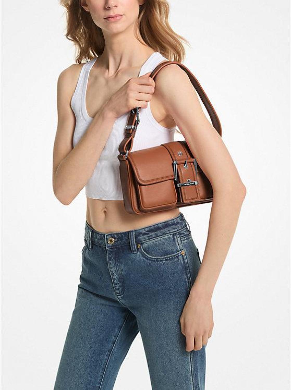• The modern-yet-classic Colby shoulder bag evokes a cool, New York-inspired sensibility. With its sleek rectangular silhouette and bold buckle accent, this chic style is crafted from supple leather and designed to rest seamlessly under your arm. Match your jewelry to the silver-tone hardware.