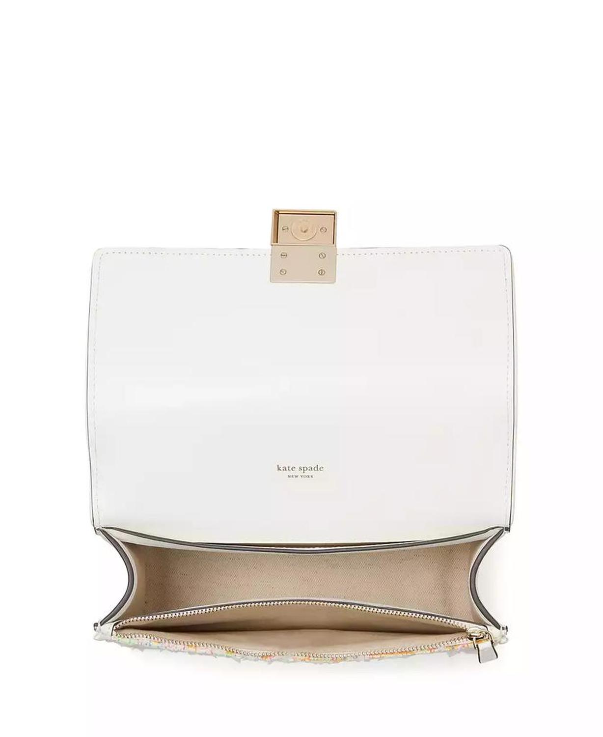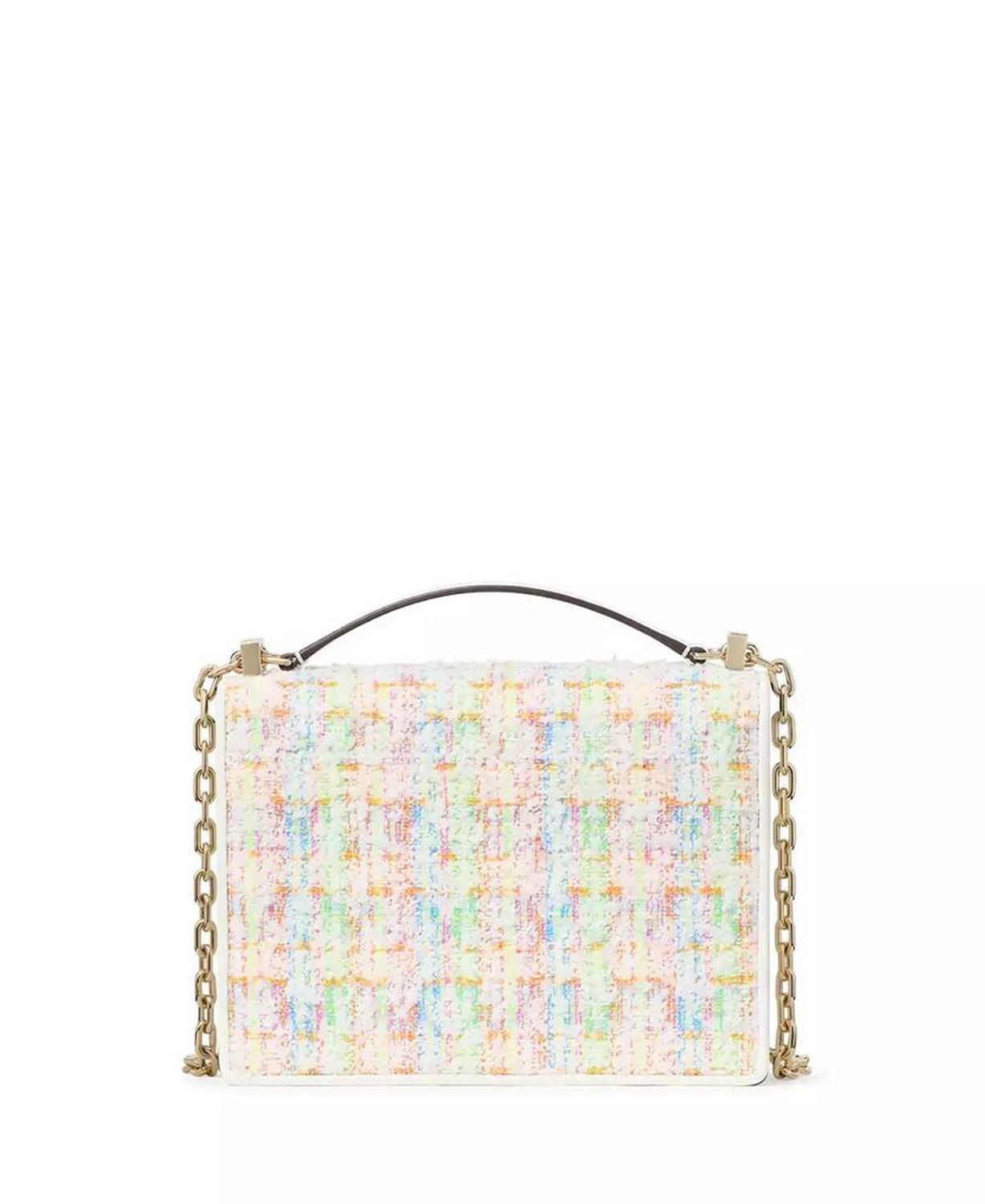 The kate spade new york Deco Tweed Chain Shoulder Bag combines sophisticated tweed fabric with a stylish chain shoulder strap, offering a refined and timeless accessory for any occasion.