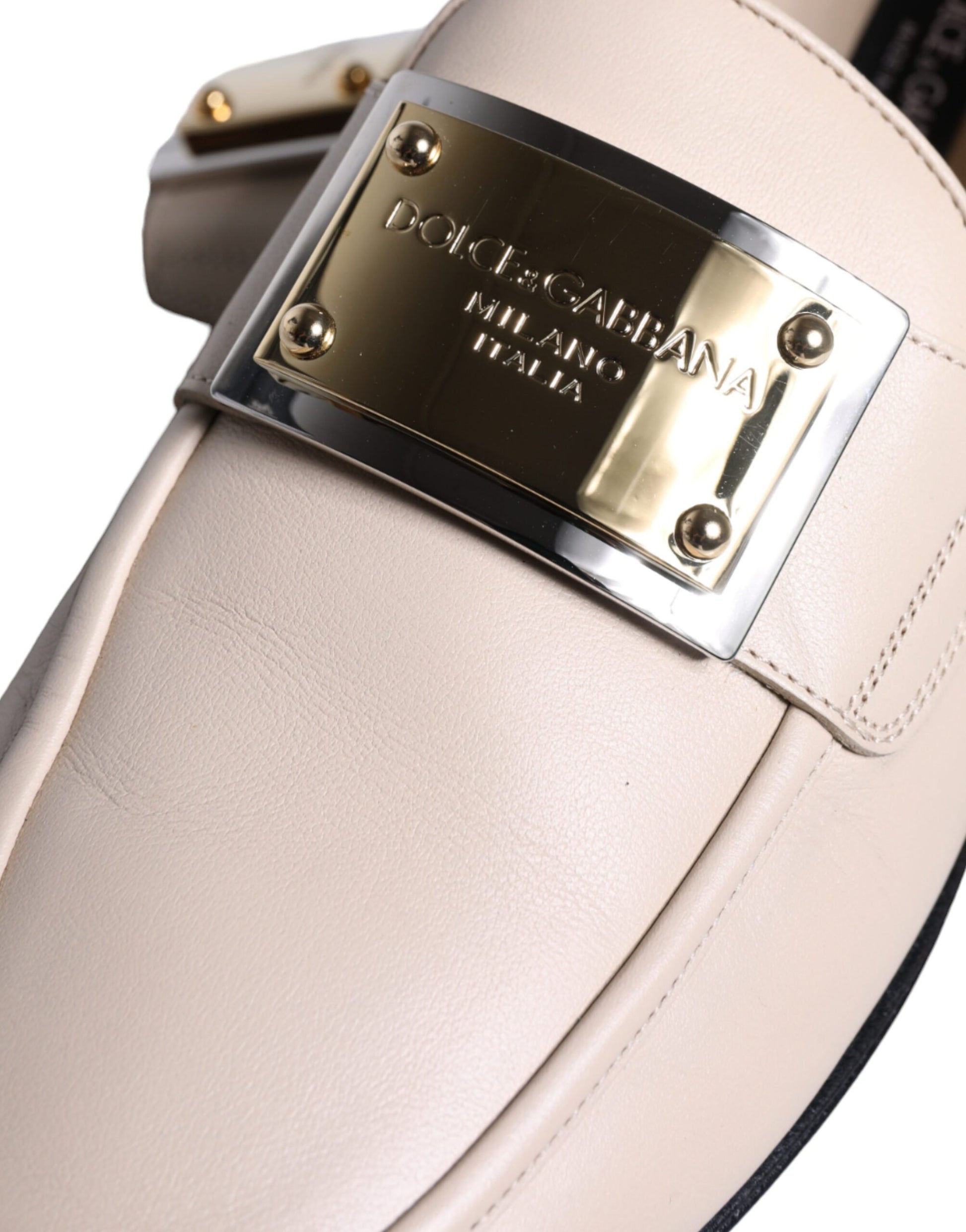 Dolce & Gabbana Beige Leather Logo Plaque Slip On Men Loafers Shoes