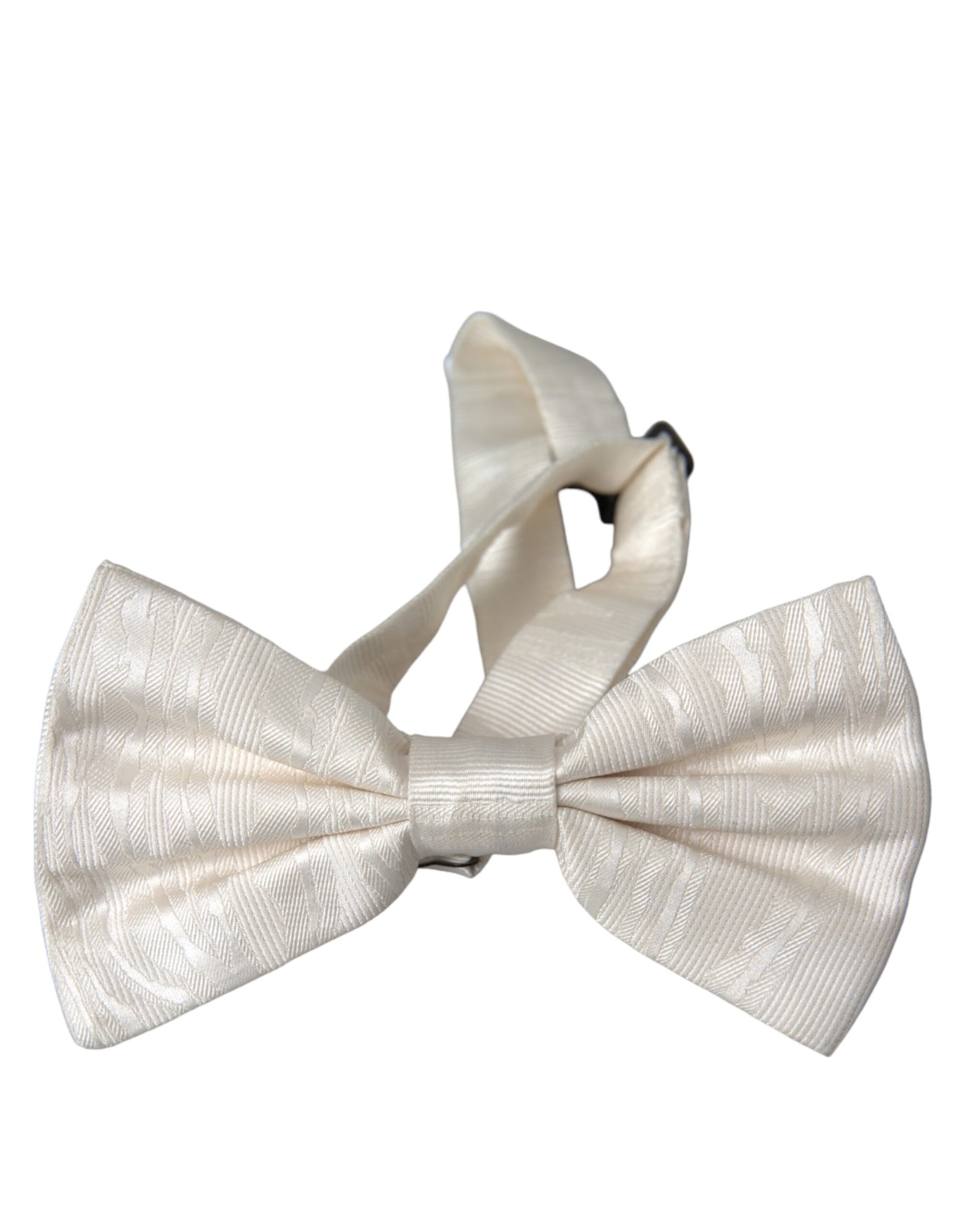 Dolce & Gabbana White Jacquard Silk Adjustable Neck Men Bow Tie