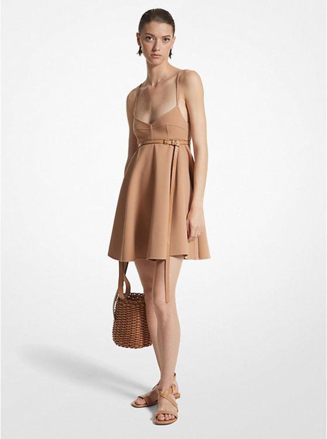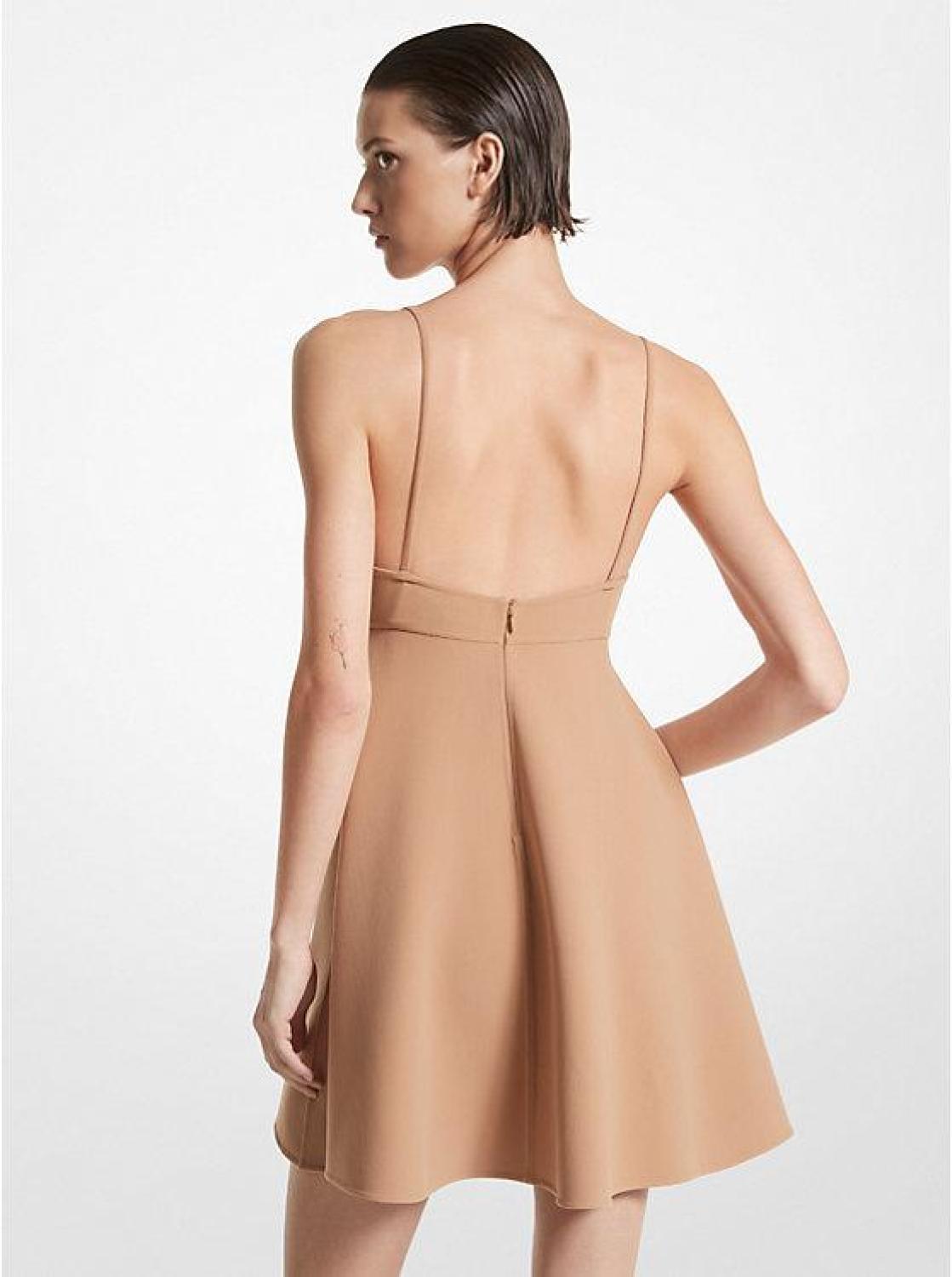 • This dress doesn’t fall short when it comes to resort glamour. It’s tailored from stretch-infused wool with a contoured bodice and mini skirt. Emulate the season’s styling by pairing it with a woven bucket handbag and tonal sandals. Made in Italy.