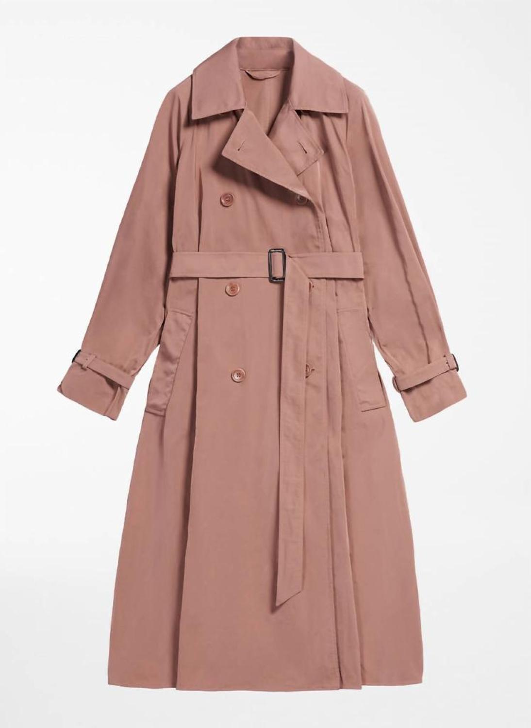 • A timeless classic. You'll be reaching for this trench every season.Trench-style, Slightly flared duster coat The wide raglan sleeves are completed with a strap at the cuffs Double-breasted fastening with buttons and a matching fabric belt with buckle and yarn-embroidered eyelets Unlined Color - Antique rose Fabric - 100% polyester