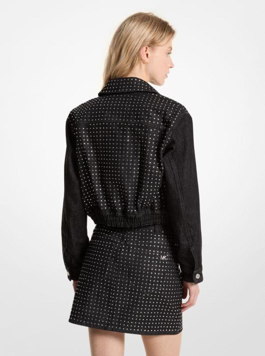 Scores of glittering crystals enliven this denim jacket for the season. It’s made from stretch cotton in a shrunken silhouette that’s further accentuated by an elastic waist. Wear yours with the matching skirt for an even bigger impact. • Jacket • Stretch denim • 99% cotton/1% elastane • Button fastening • Dry clean • Imported • Model is 5’9”/175 cm wearing size XS • Jacket • Stretch denim • 99% cotton/1% elastane • Button fastening • Dry clean • Imported • Model is 5’9”/175 cm wearing size XS