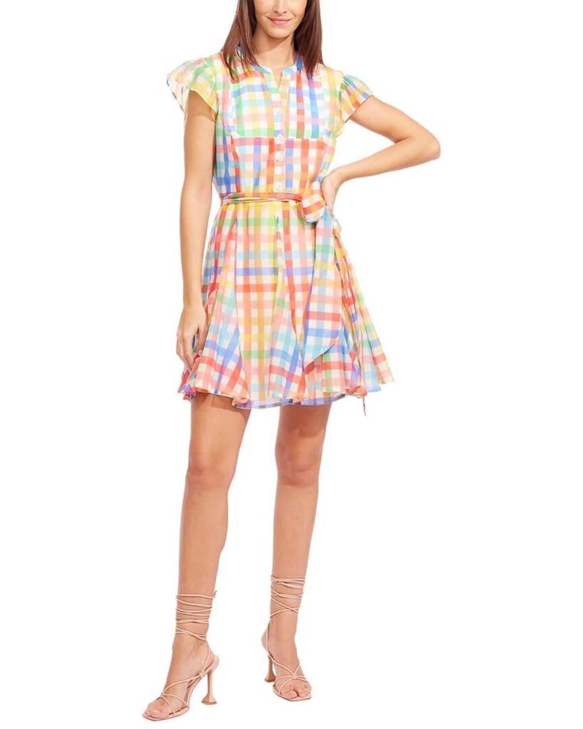 Introducing the stunning Eva Franco Meret Silk-Blend Dress in Tuscana Plaid. This beautiful dress features tiered cap sleeves, a waist tie to cinch in your silhouette, and a classic button front. Made with 70% cotton and 30% silk, this dress is luxurious and comfortable. The back zipper makes it easy to slip on and off, while the lining made from 100% polyester adds an extra layer of quality. Hand washable and proudly made in the USA, this dress is the perfect addition to your wardrobe. Dress up for any occasion with the Eva Franco Meret Silk-Blend Dress.