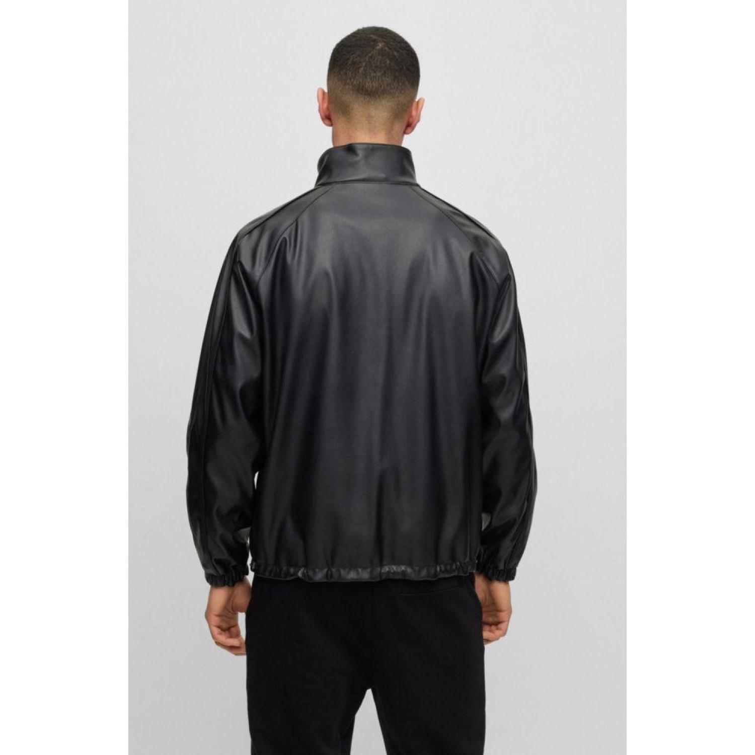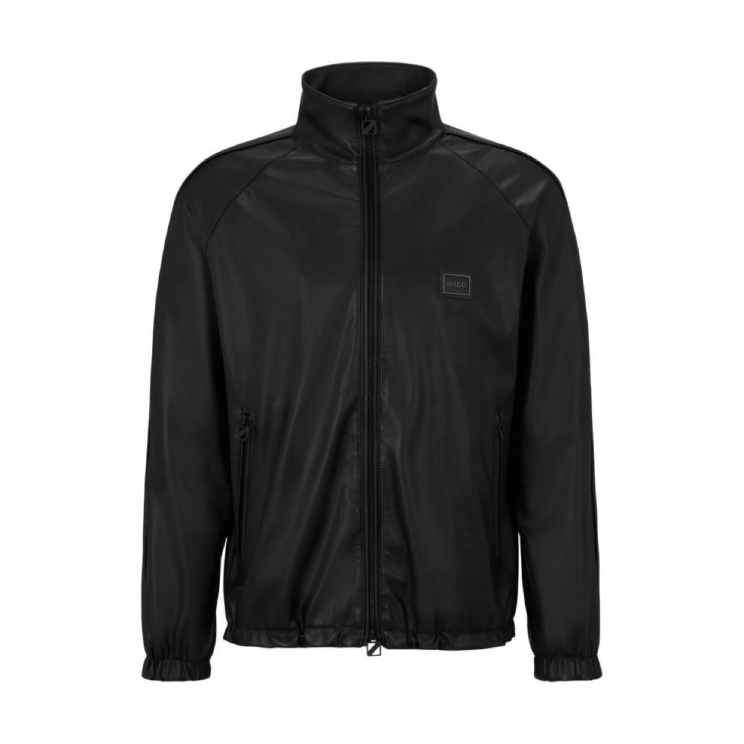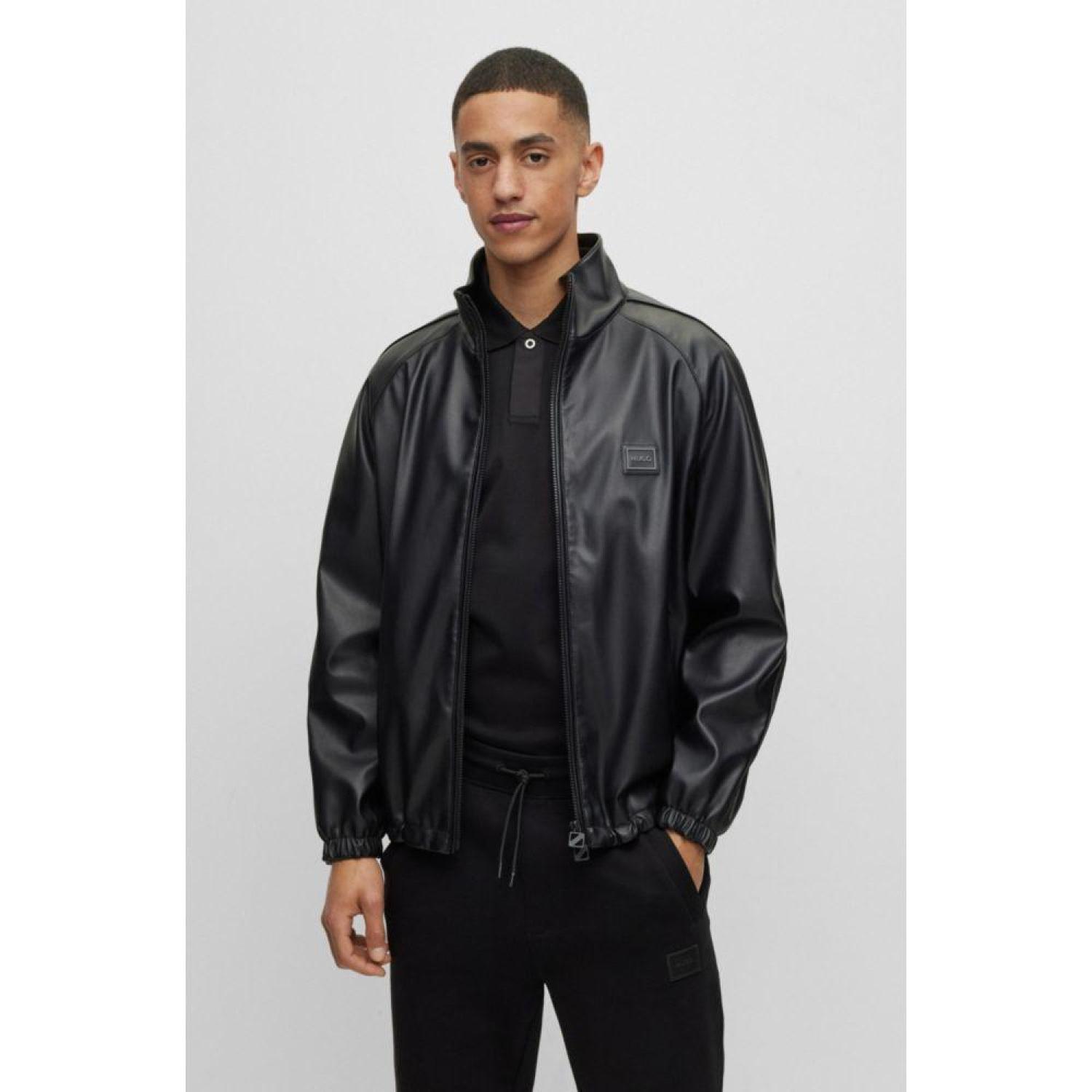 A relaxed-fit jacket in stretch faux leather with a framed logo in anodized metal by HUGO Menswear.