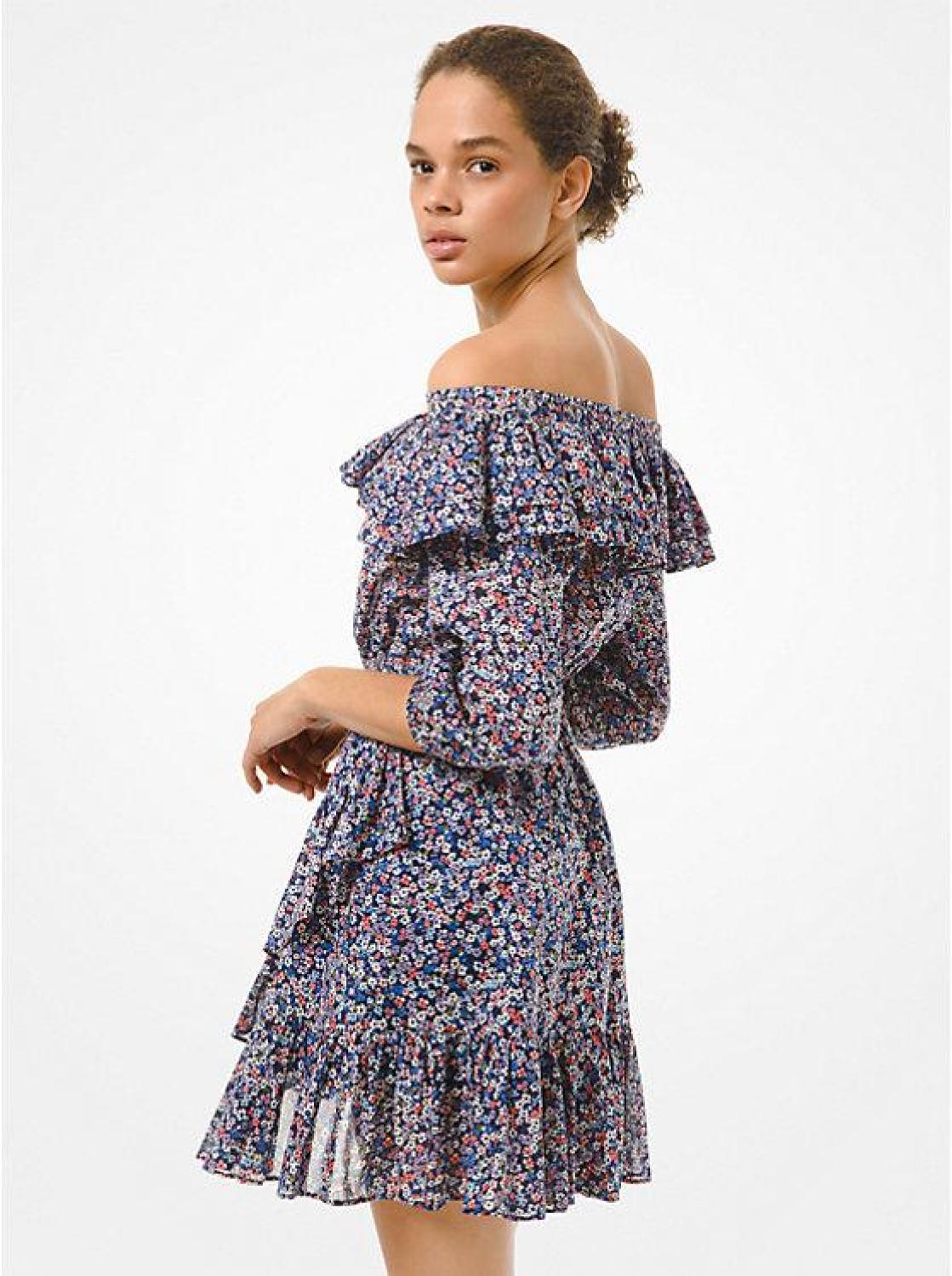 Floral Cotton Lawn Off-the-Shoulder Dress