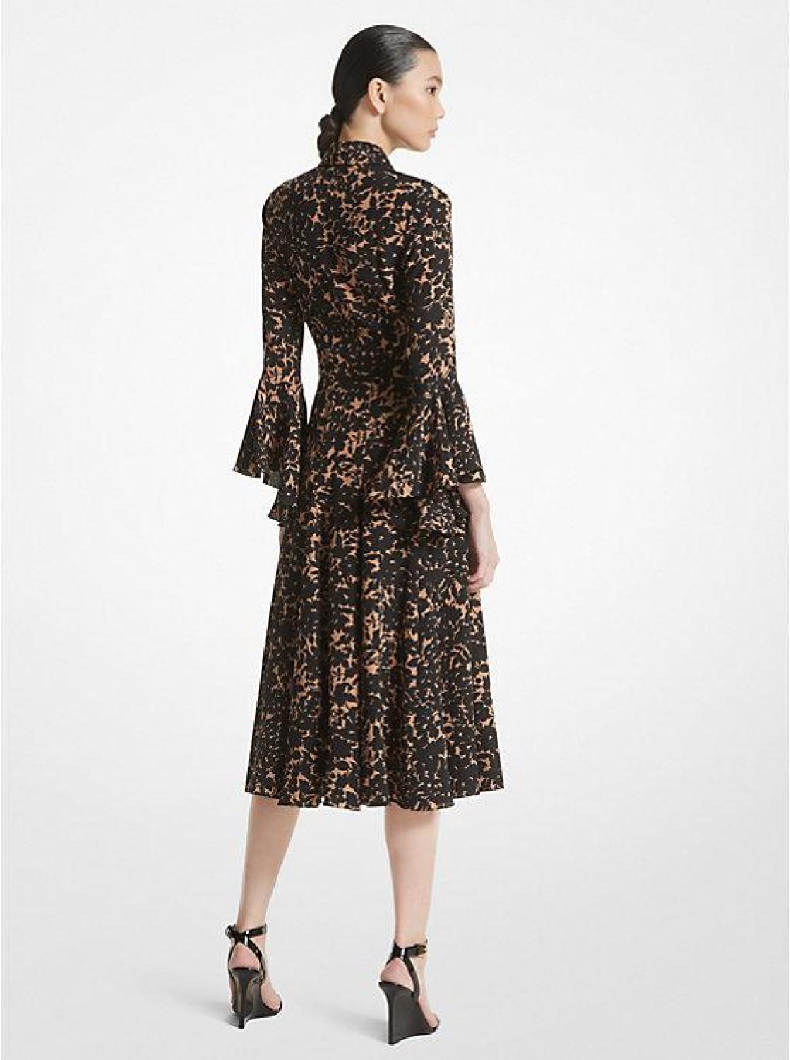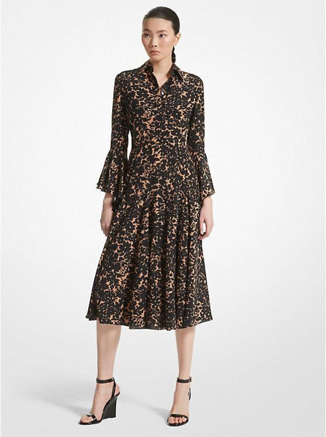 Floral Silk Crepe De Chine Flare-Sleeve Shirtdress