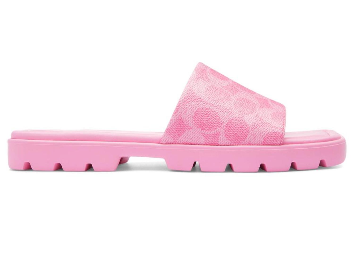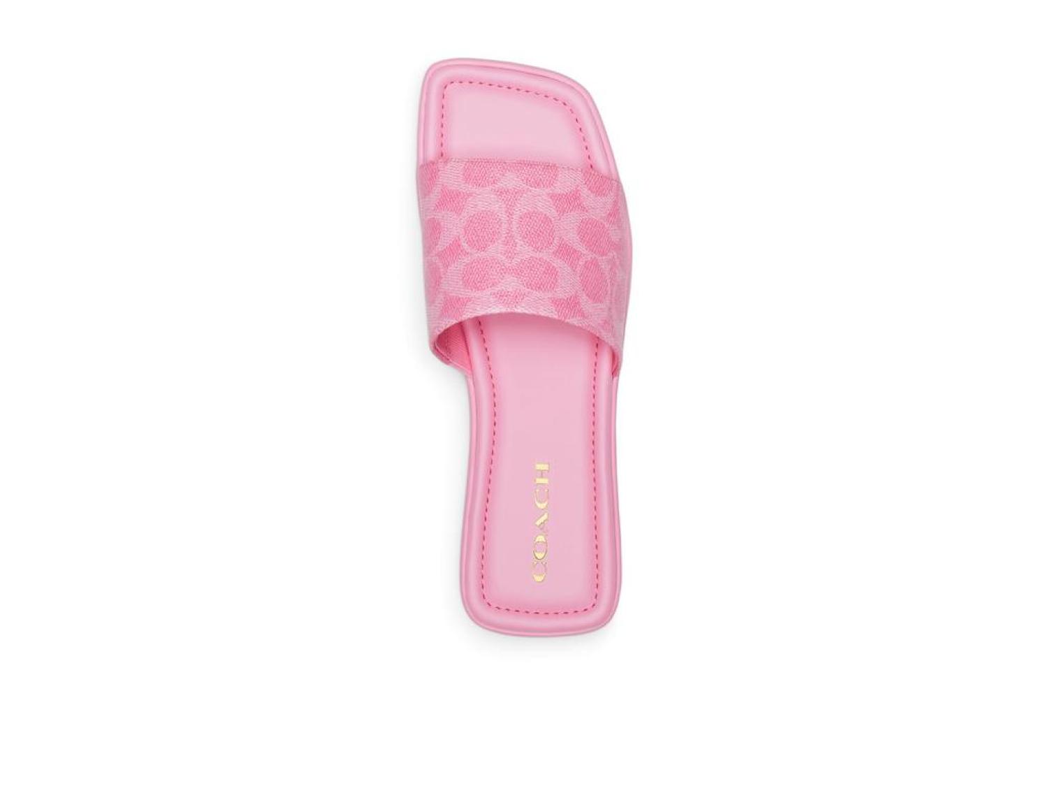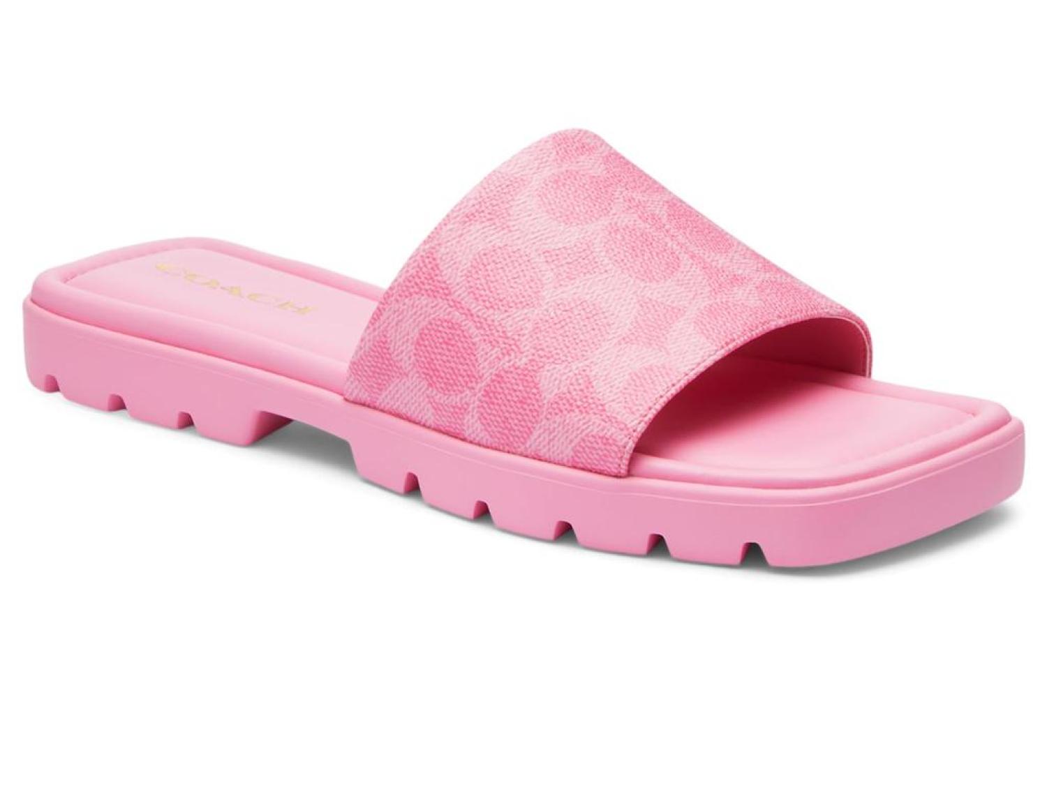 Please Note: COACH™ items cannot be shipped to military addresses (APO or FPO) and addresses in Hawaii, the Virgin Islands, Guam or any other locations outside of the continental US. Lounge around with comfort wearing COACH® Florence Coated Canvas Sandal. The slides are designed with a signature coated canvas upper, faux leather lining, and man-made leather footbed. Slip-on style. Open squared toe. EVA outsole. Imported. Product measurements were taken using size 7, width M. Please note that measurements may vary by size. Measurements: Heel Height: 1/4 in Weight: 8 oz