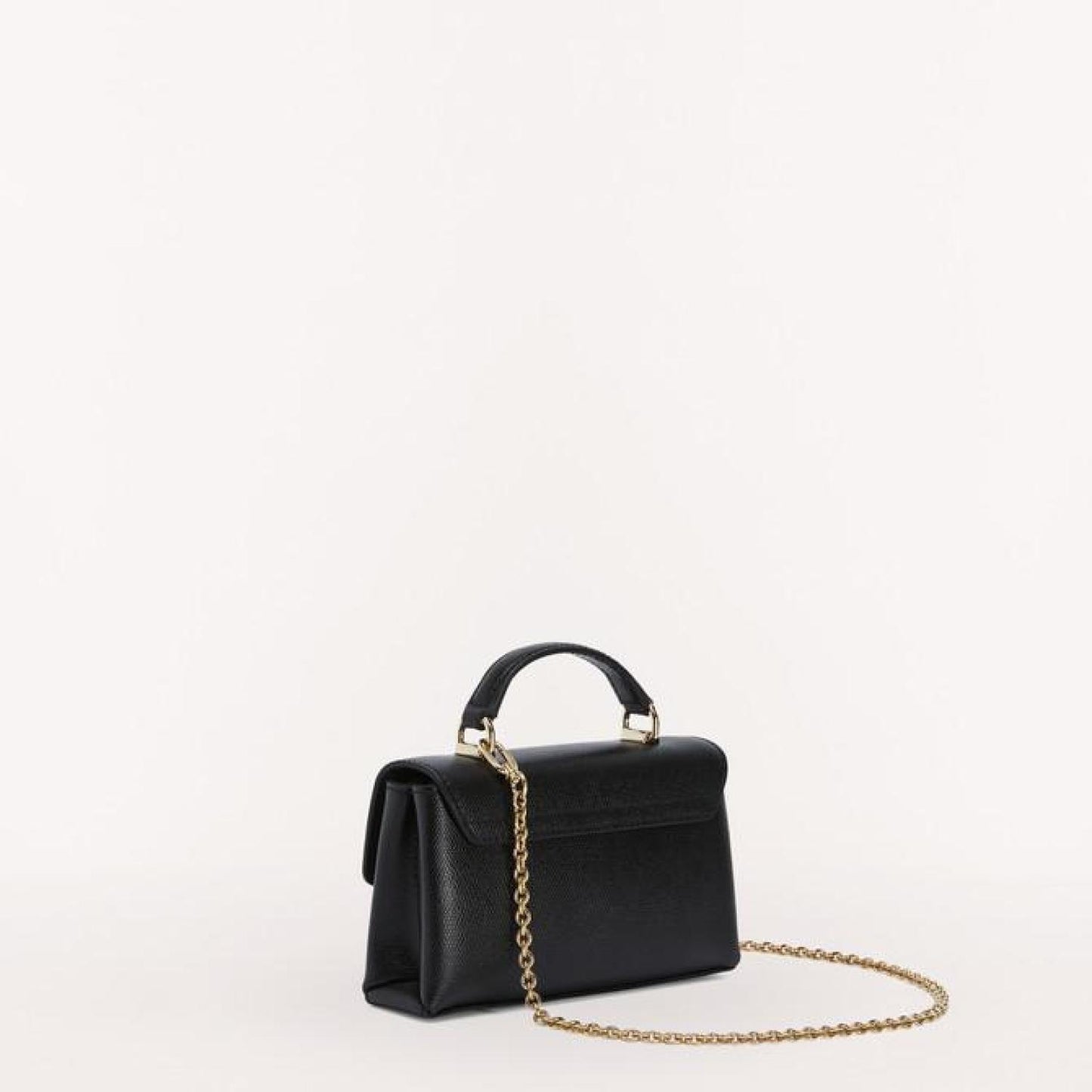 • Furla 1927 is a mini handbag made of textured leather. The accessory features a removable chain strap so you can also wear it on the shoulder. The twist closure with Furla engraving on the front completes the bag.
