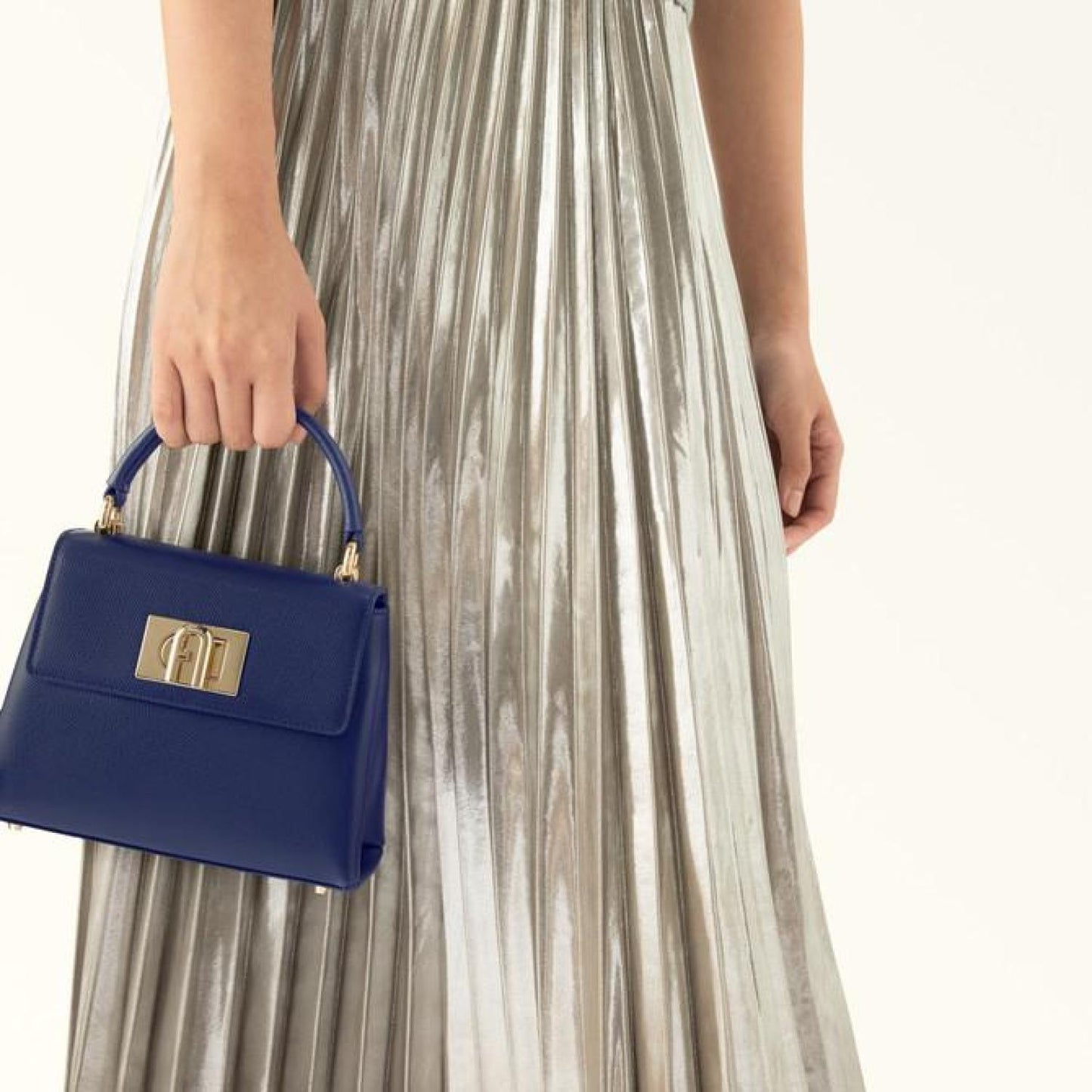 • Furla 1927 is a mini handbag made of textured leather. The bag can also be worn across the body thanks to the removable strap. The twist closure with the Arch logo on the front completes the bag. -Open pocket on the back- Metal feet studs- Inner gusseted construction with a zipped pocket