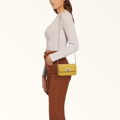 • This sweet Furla 1927 style is super compact. Made of precious leather with a printed grain texture, it features a thin chain strap for added versatility – transforming the bag into a shoulder or crossbody bag.