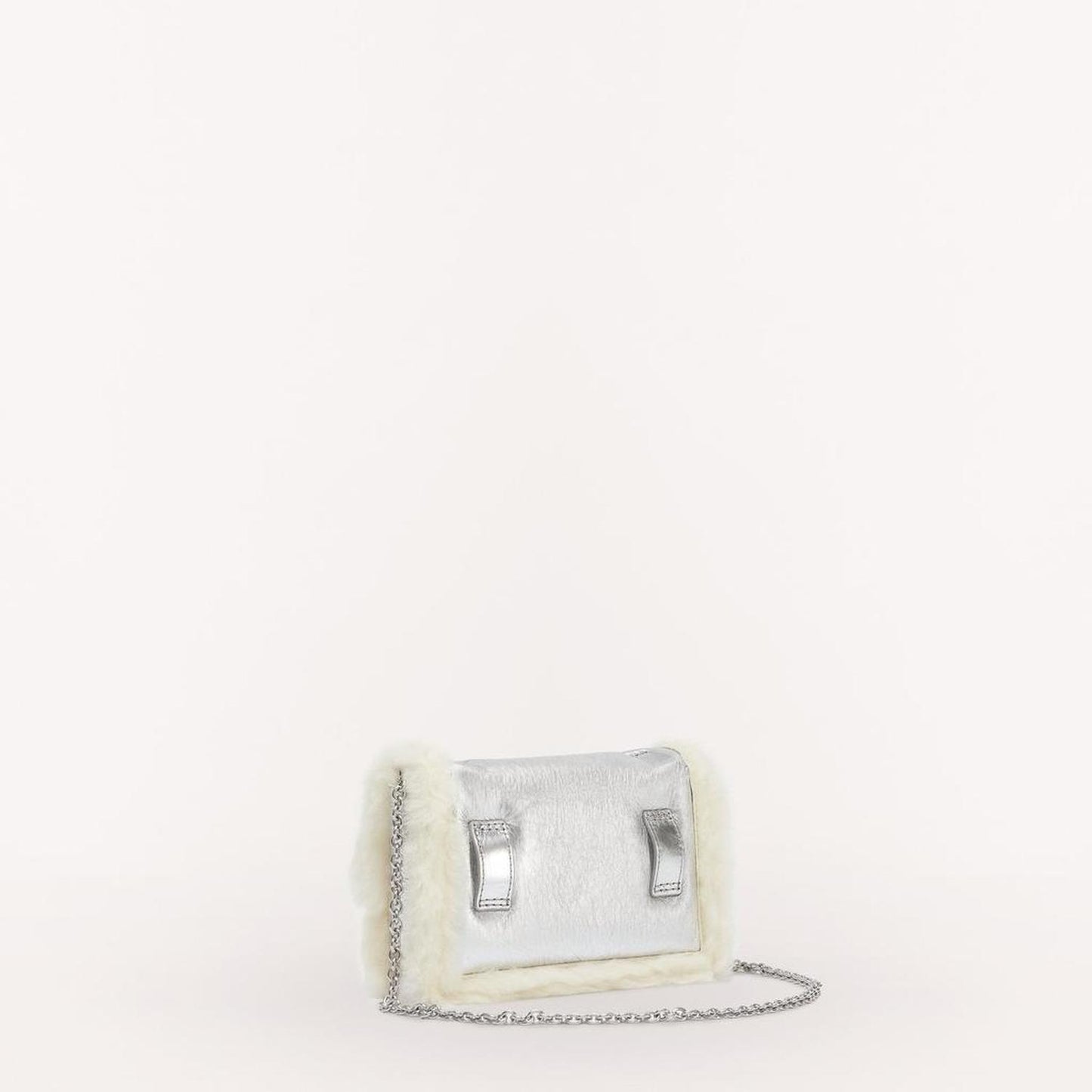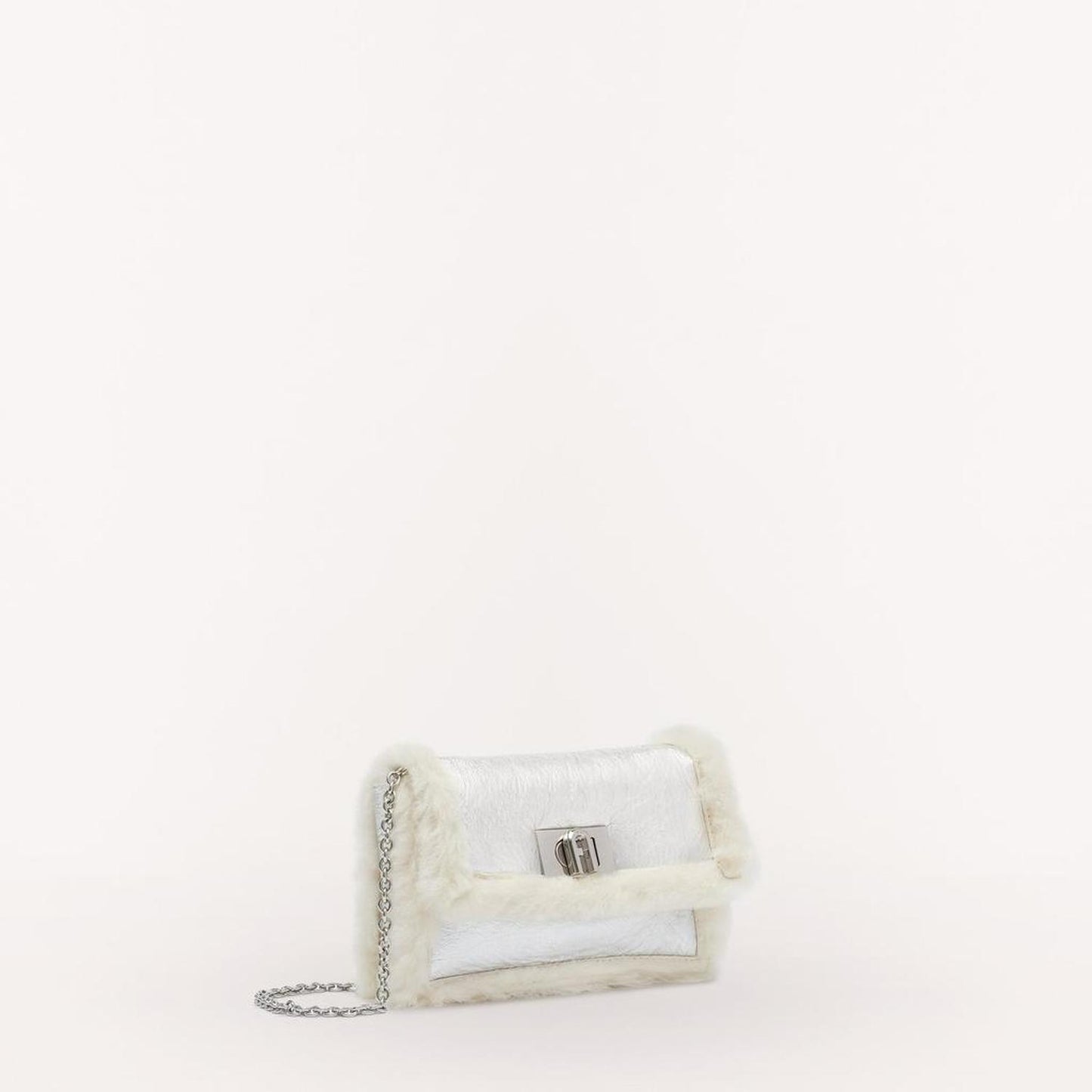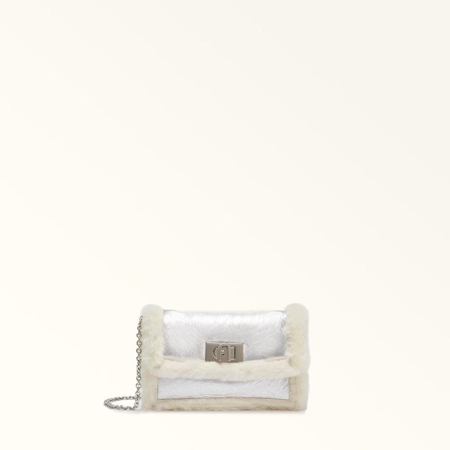 Furla 1927 is a multi-functional mini bag made of metallic double sheepskin. By interchanging the two straps, it can be carried as a shoulder bag, crossbody bag, handbag or belt bag. The twist closure with galvanised metal Arch logo completes the accessory. - Inner lining with three credit card slots- Removable chain strap with 55 cm drop length - Adjustable and removable leather strap with 17 holes - Palladium finishes Dimensions 6.71 x 4.33 x 1.57 (w x h x d)