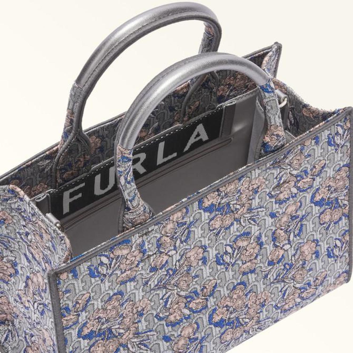 Add a stylish touch to your everyday with this Furla Opportunity tote, crafted from refined jacquard fabric embellished with an elegant Opera motif. Its size makes it ideal for keeping all your essentials close at hand, its squared shape makes it distinctive, and its shoulder strap means you can wear it on the shoulder as well as carry it using the handles. - Zipped inner pocket- Two open inner pockets- Leather double handles- Metal feet- Removable matching shoulder strap in jacquard fabric