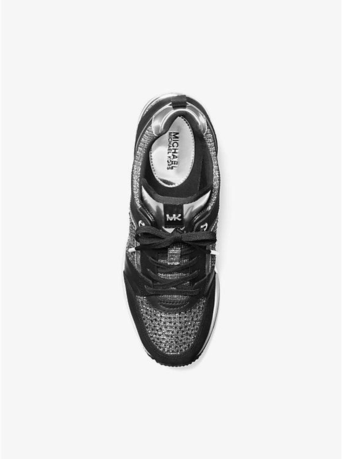 Georgie Leather and Glitter Chain-Mesh Trainer