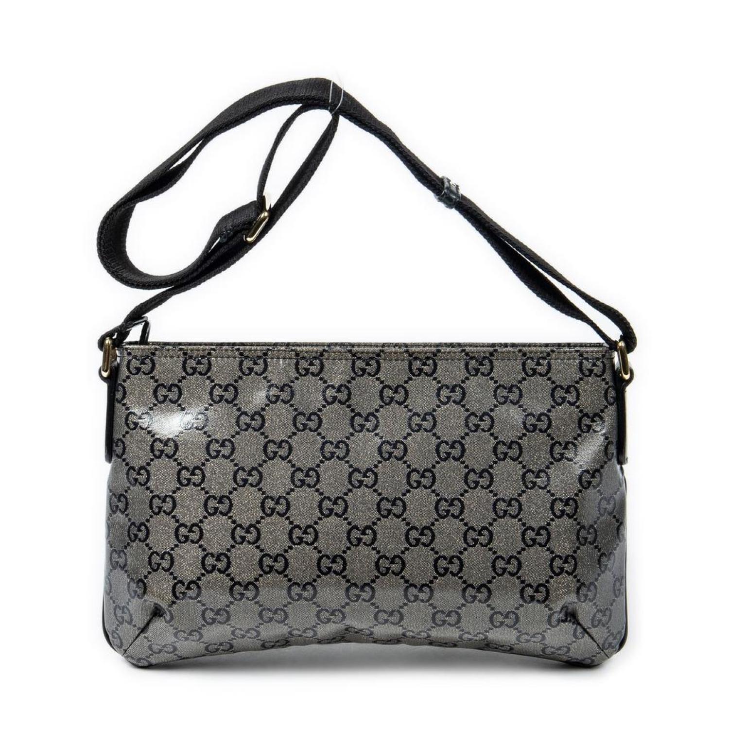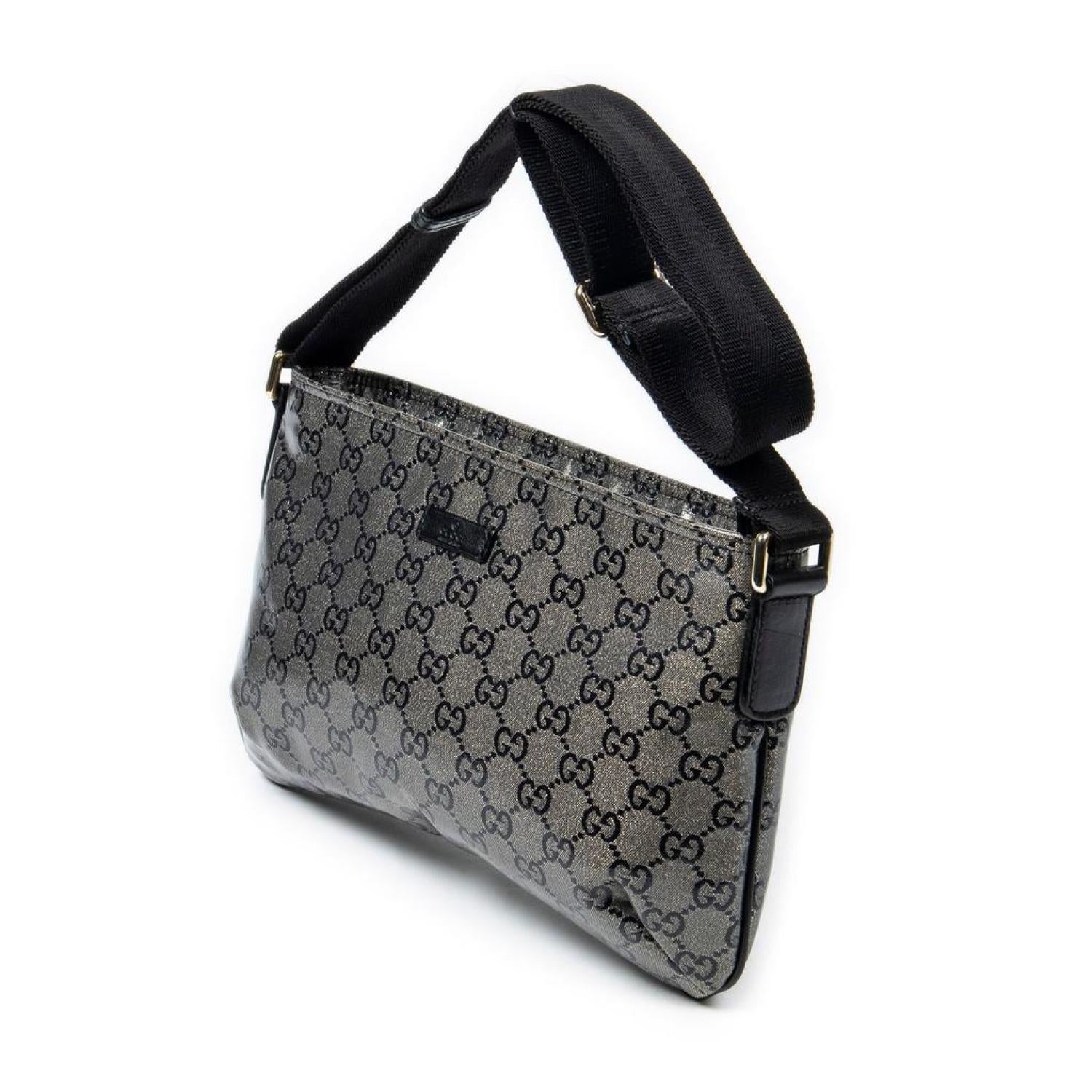 Gucci Shoulder Bag in Gray/Black Crystal Coated Canvas and Gold hardware. Dimensions - 27*18*3cm. Serial number - 189749 001998. Inclusions - None. Pre-Owned
