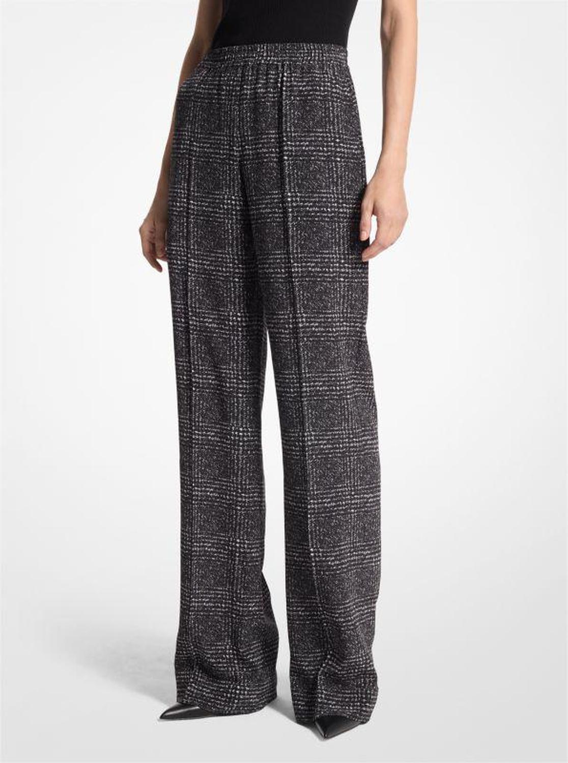 Glen Plaid Silk Crepe De Chine Pajama Pants