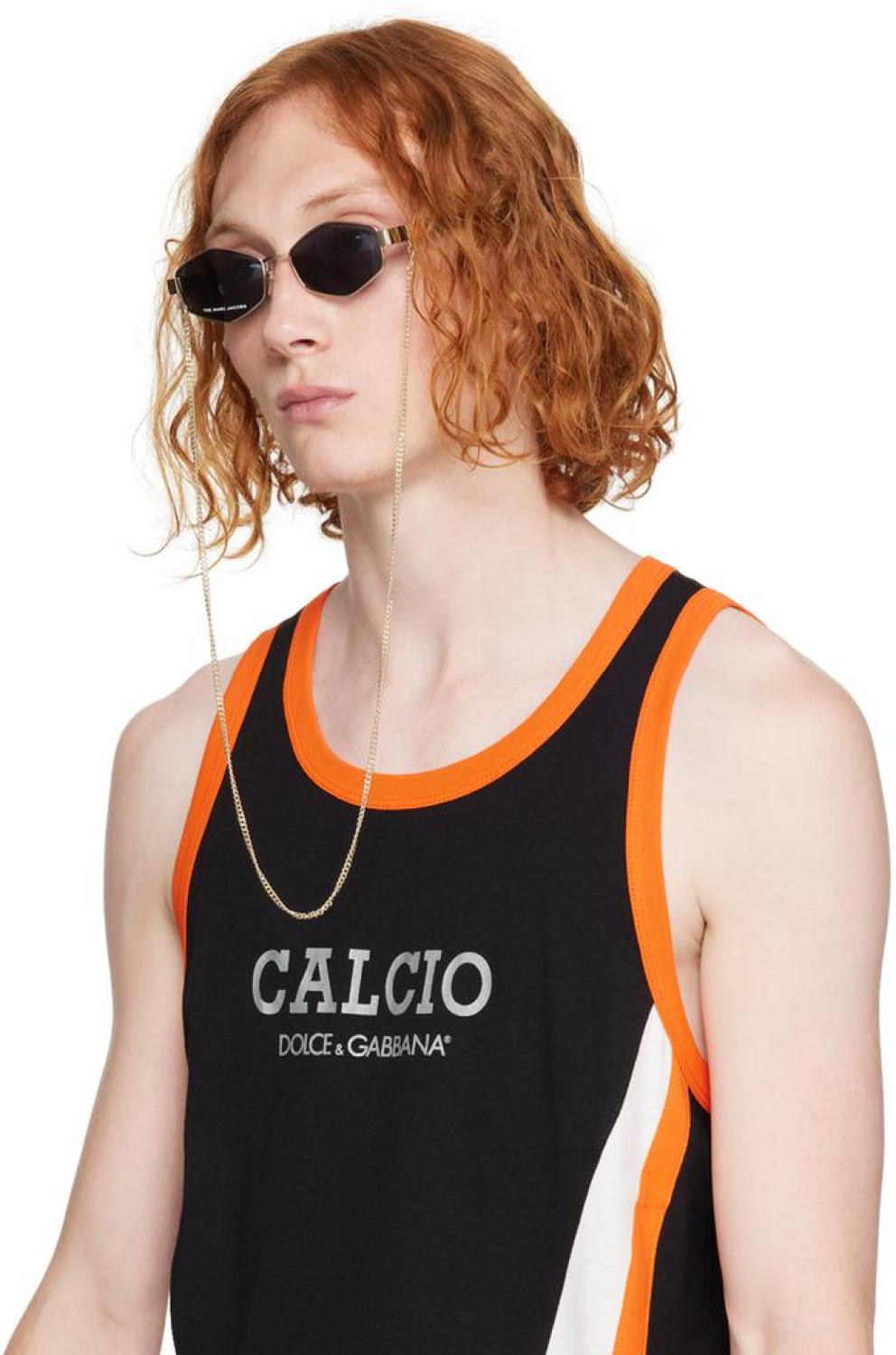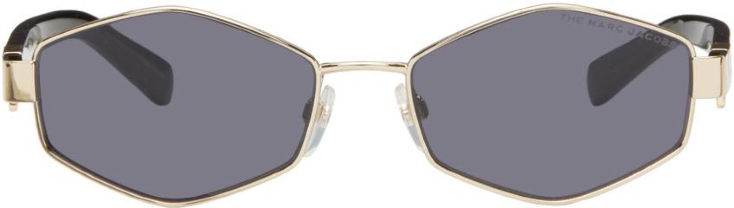 Hexagonal metal-frame sunglasses in gold-tone.