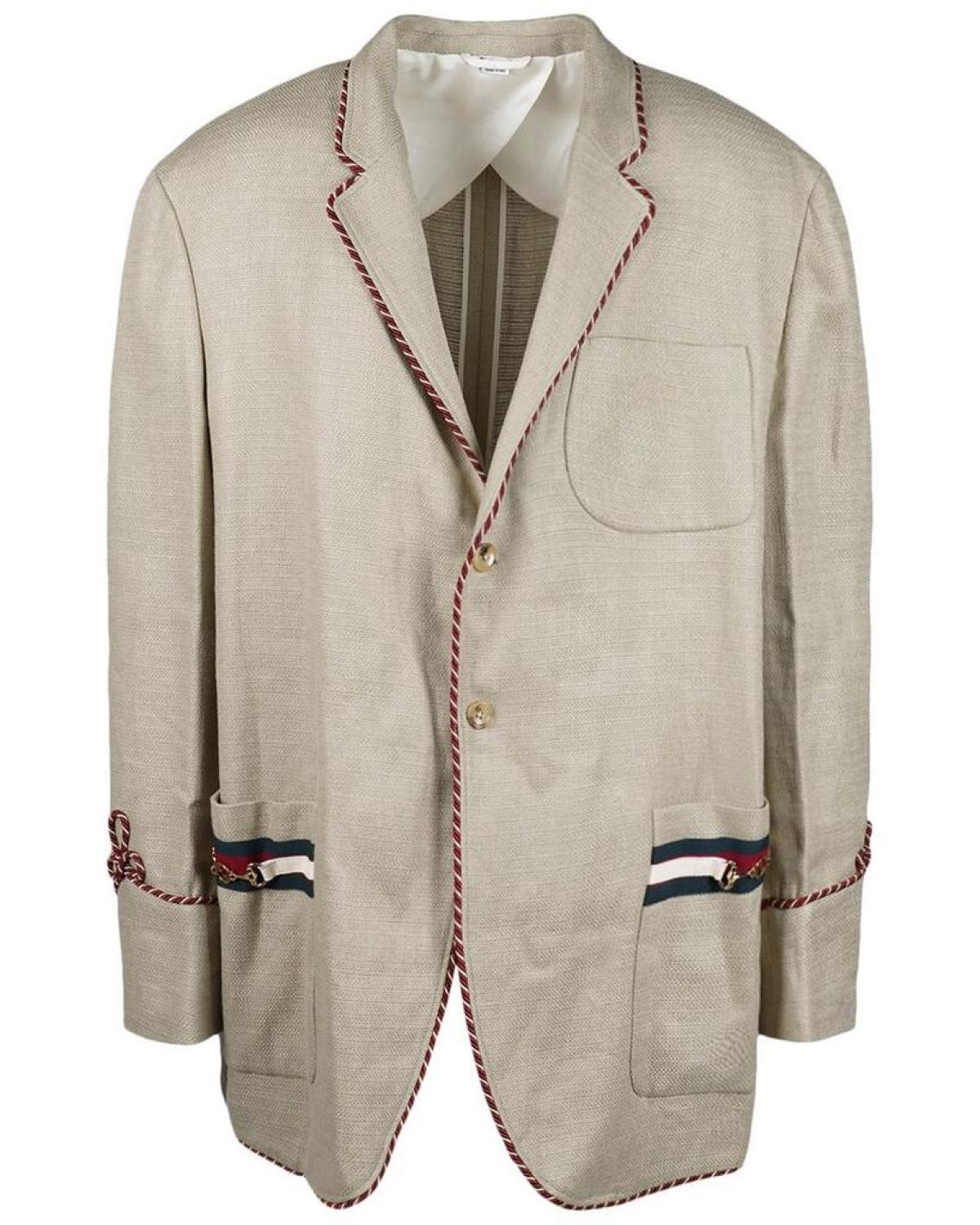 Introducing the Gucci Fo Arli' Jacket, a luxurious addition to any fashion-forward man's wardrobe. Made in Italy with 100% cotton, this jacket boasts design details such as a button closure and a natural color that exudes effortless sophistication. As a brand known for redefining Italian luxury, Gucci has curated an eclectic and coveted collection that never fails to impress. Please note that while we stand by the authenticity of every product sold on our site, in some cases we may purchase merchandise from trusted independent suppliers rather than directly from the brand owner. Dry clean only to maintain the jacket's pristine quality. Shop our selection of men's clothing, including sport coats and blazers, and treat yourself to the Gucci Fo Arli' Jacket today.