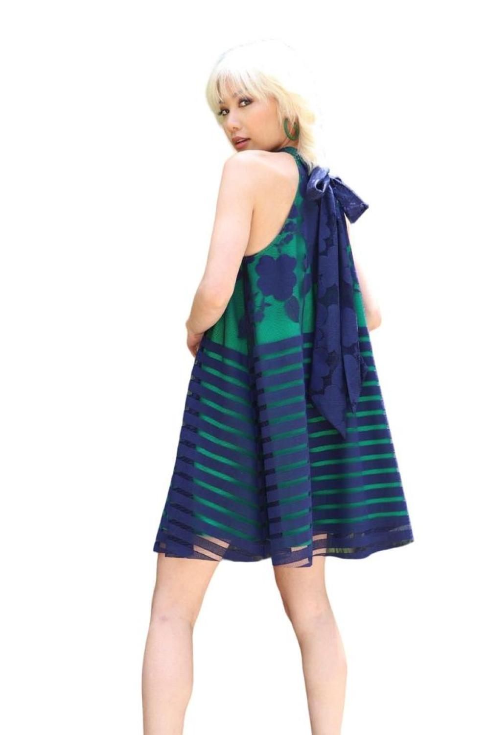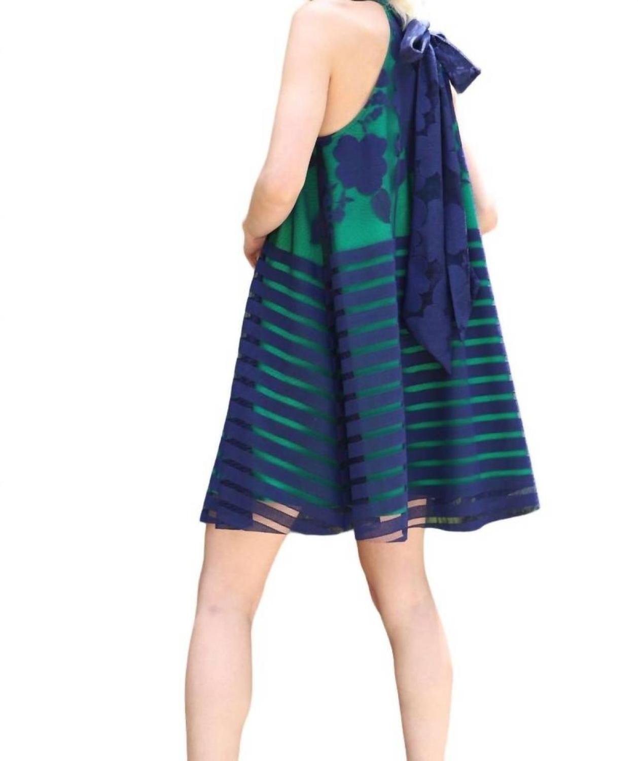 The kind of easy and flattering dress you'll be reaching for all season long.Lined. Halter neck. Swing silhouette. Back tie. Pullover styling. Nylon, rayon, spandex; polyester lining. Dimensions - Standard falls 34.5" from shoulder; hem hits above the knee.
