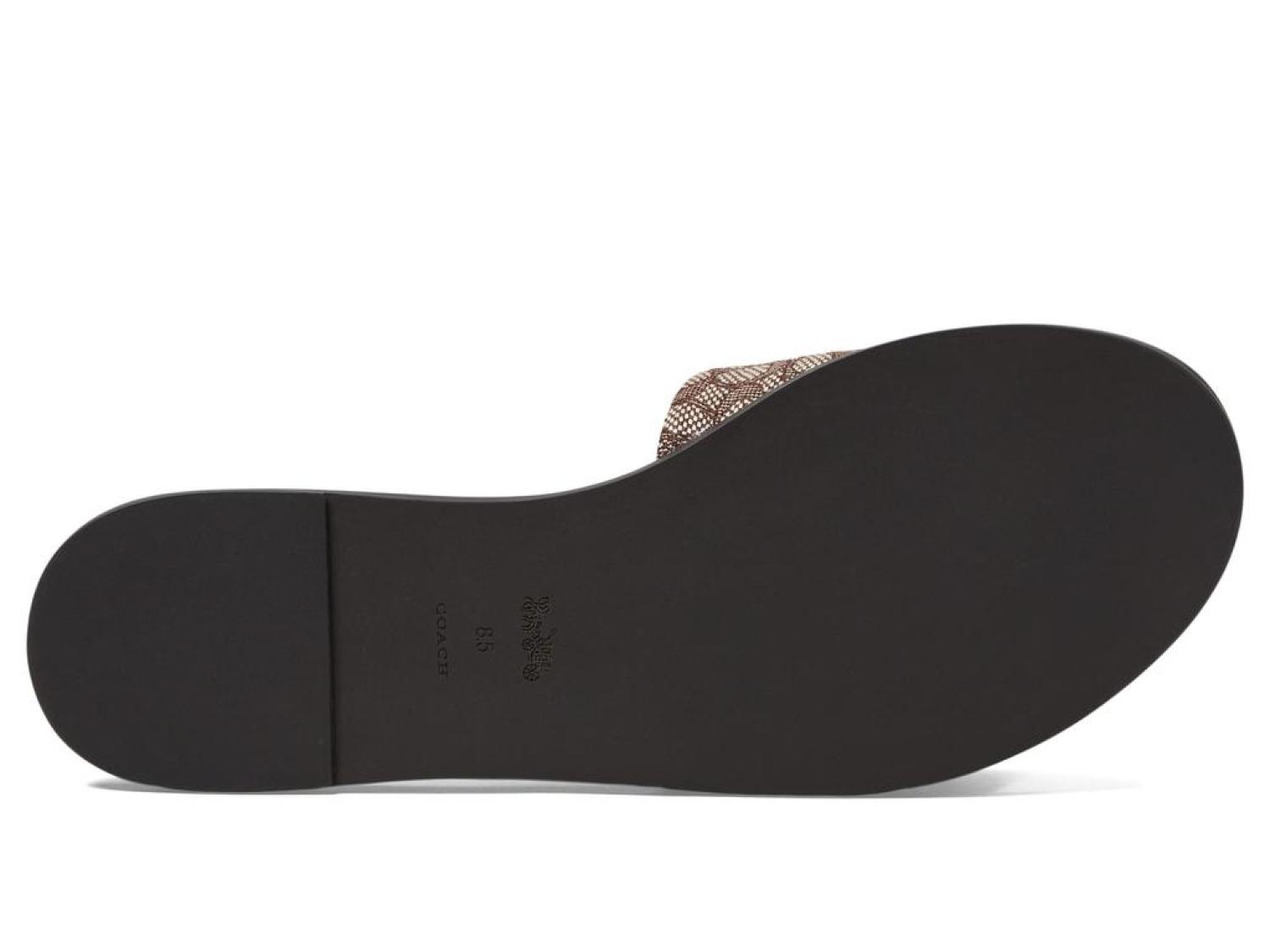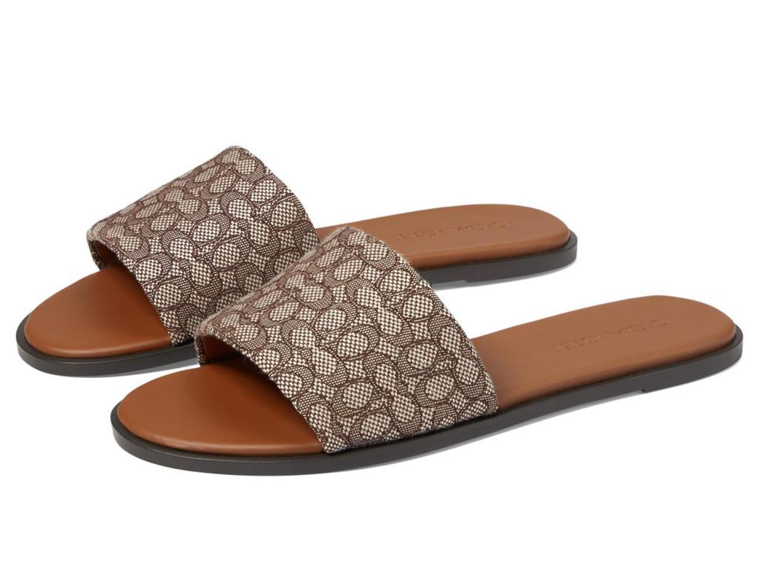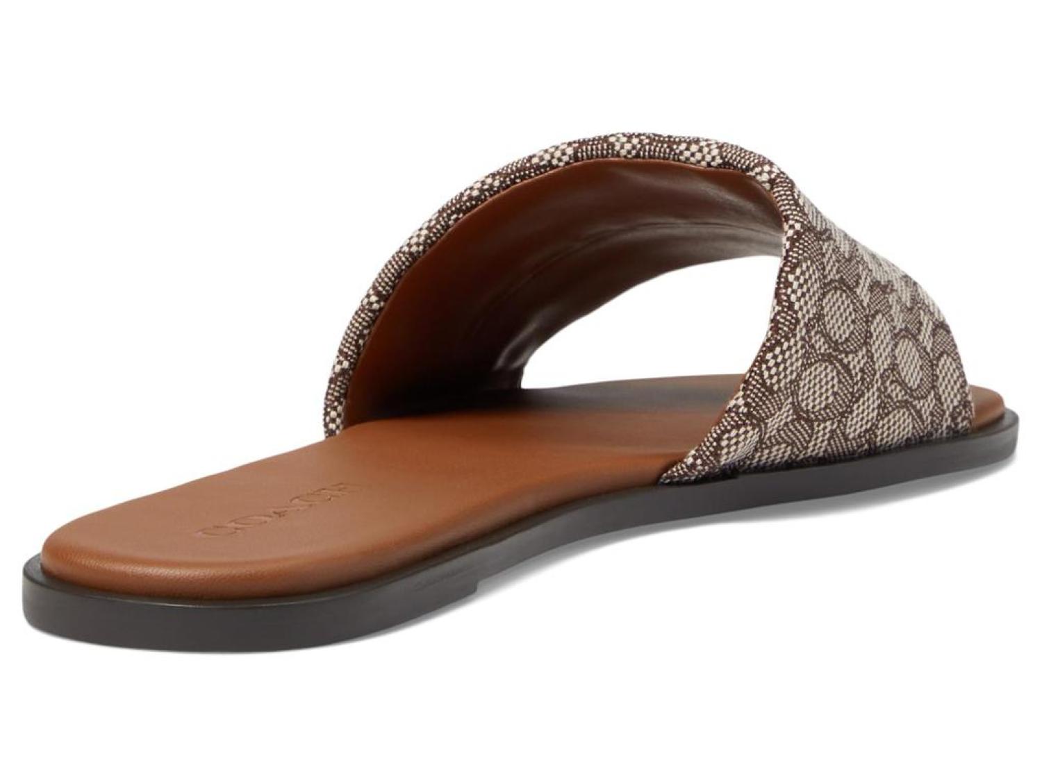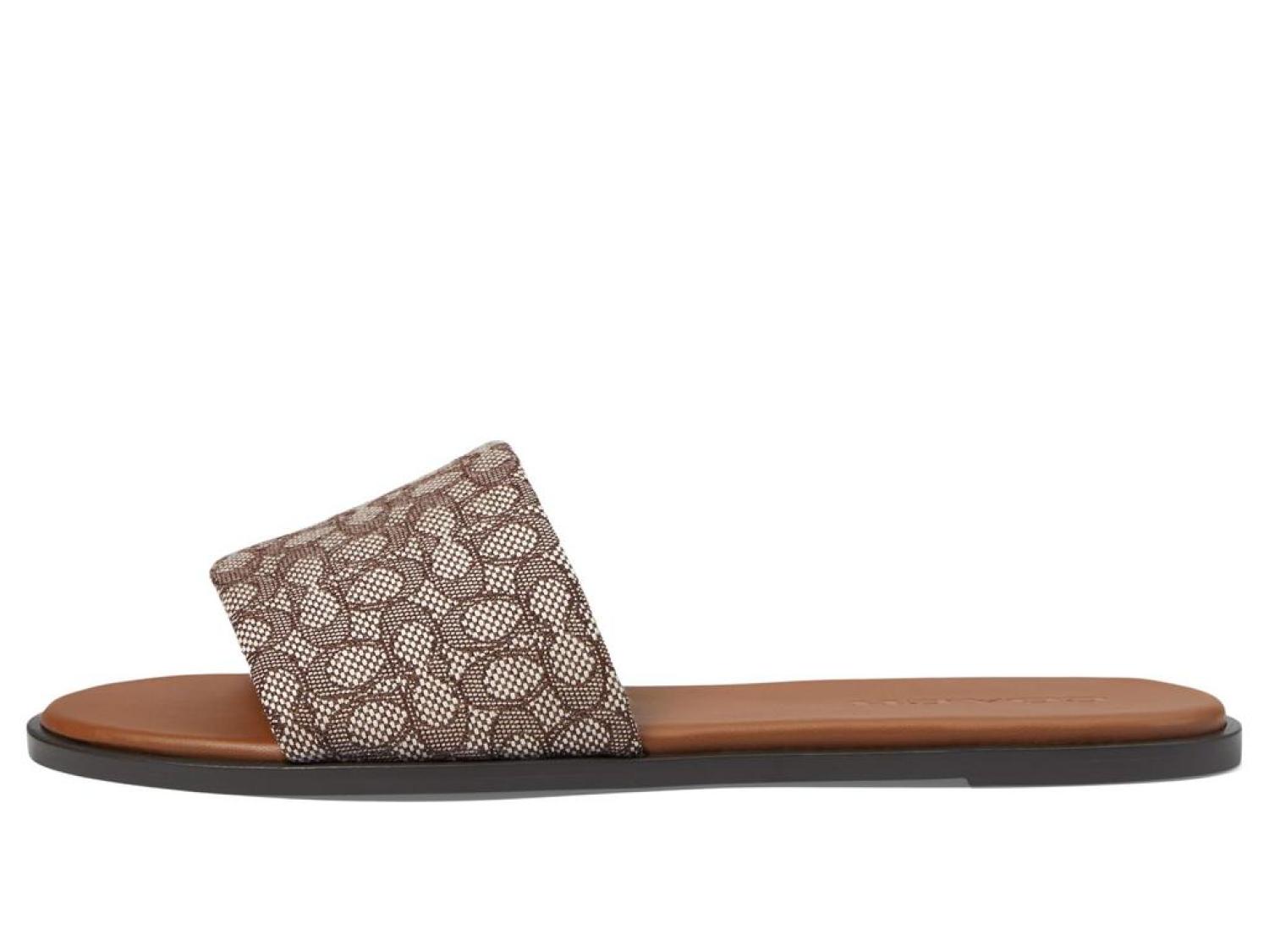 Maintain your effortless style in the COACH® Holly Mini Signature Jacquard Sandal. This slip-on sandal features a signature jacquard upper in a round, open toe silhouette, man-made leather lining and insole, and monogram branding on upper.