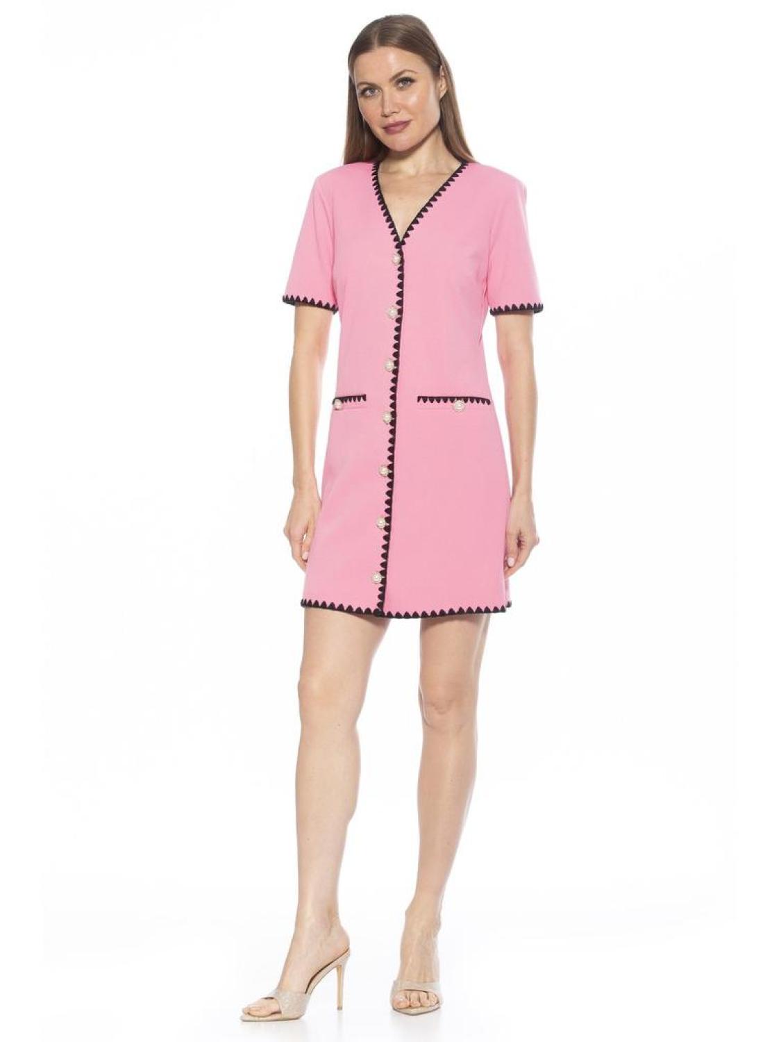 Indulge in the elegance and sophistication of our Jaiya Dress. The V-neckline and contrast trim add a touch of luxury, while the button-down design and scuba crepe material provide a tasteful and exclusive feel. Perfect for any occasion, this mini dress is a must-have for your wardrobe. V-Neck Contrast trim Button Down Dress Scuba Crepe material Mini Dress Imported Style D4014A