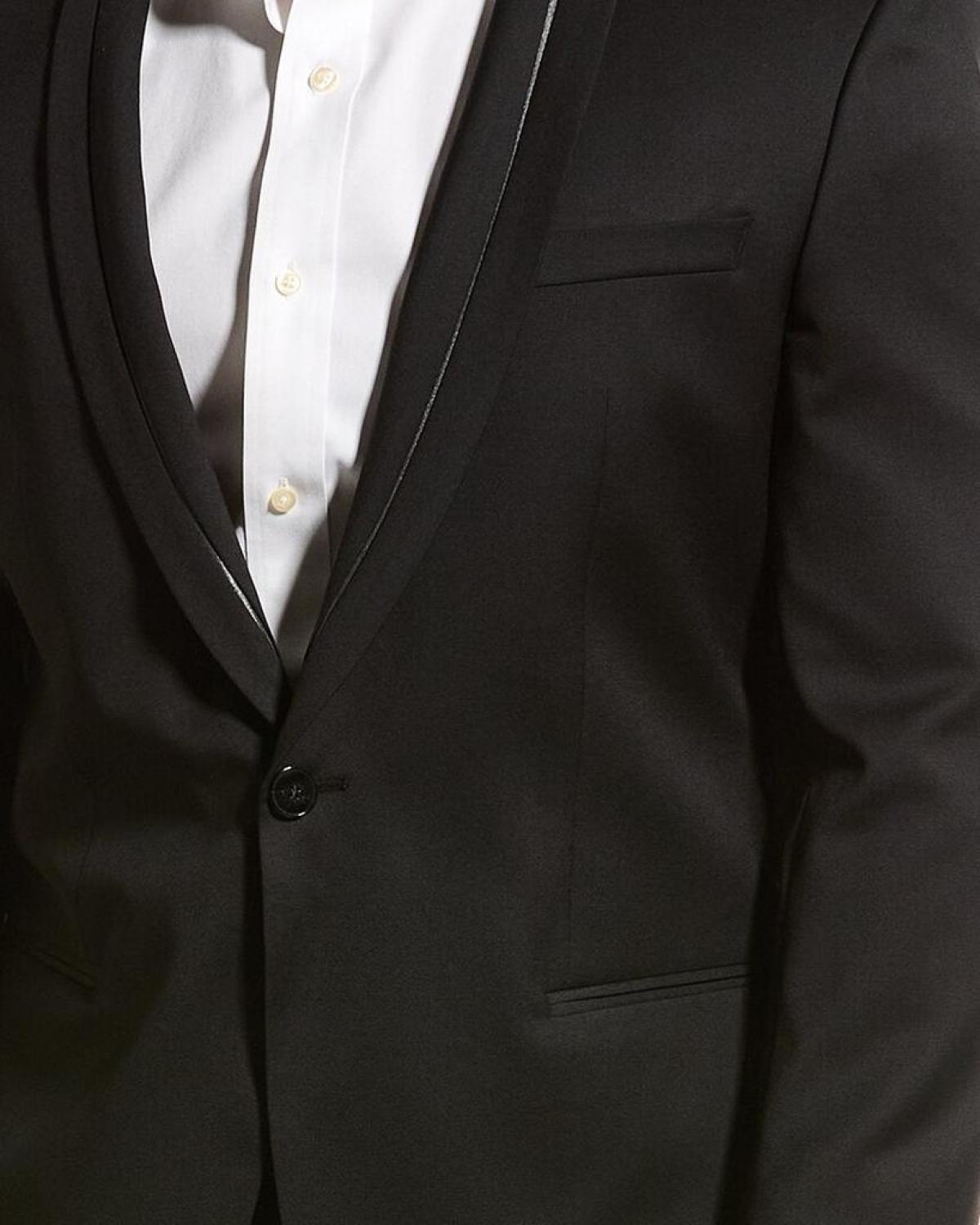 Elevate your style with the Hugo Boss 2pc Wool Suit. This sleek and sophisticated suit is perfect for any formal occasion, whether it's a business meeting or a special event. The black suit features a shawl lapel jacket with a left chest pocket, dual front pockets, button cuffs, side vents, inner pockets, and zip-fly trousers. Made from 100% wool, this suit is both stylish and comfortable. The single-button front closure adds a modern touch to this classic design. Pair it with a crisp white shirt and polished shoes for a timeless look. Dry clean only. Imported from the renowned fashion house, Hugo Boss.