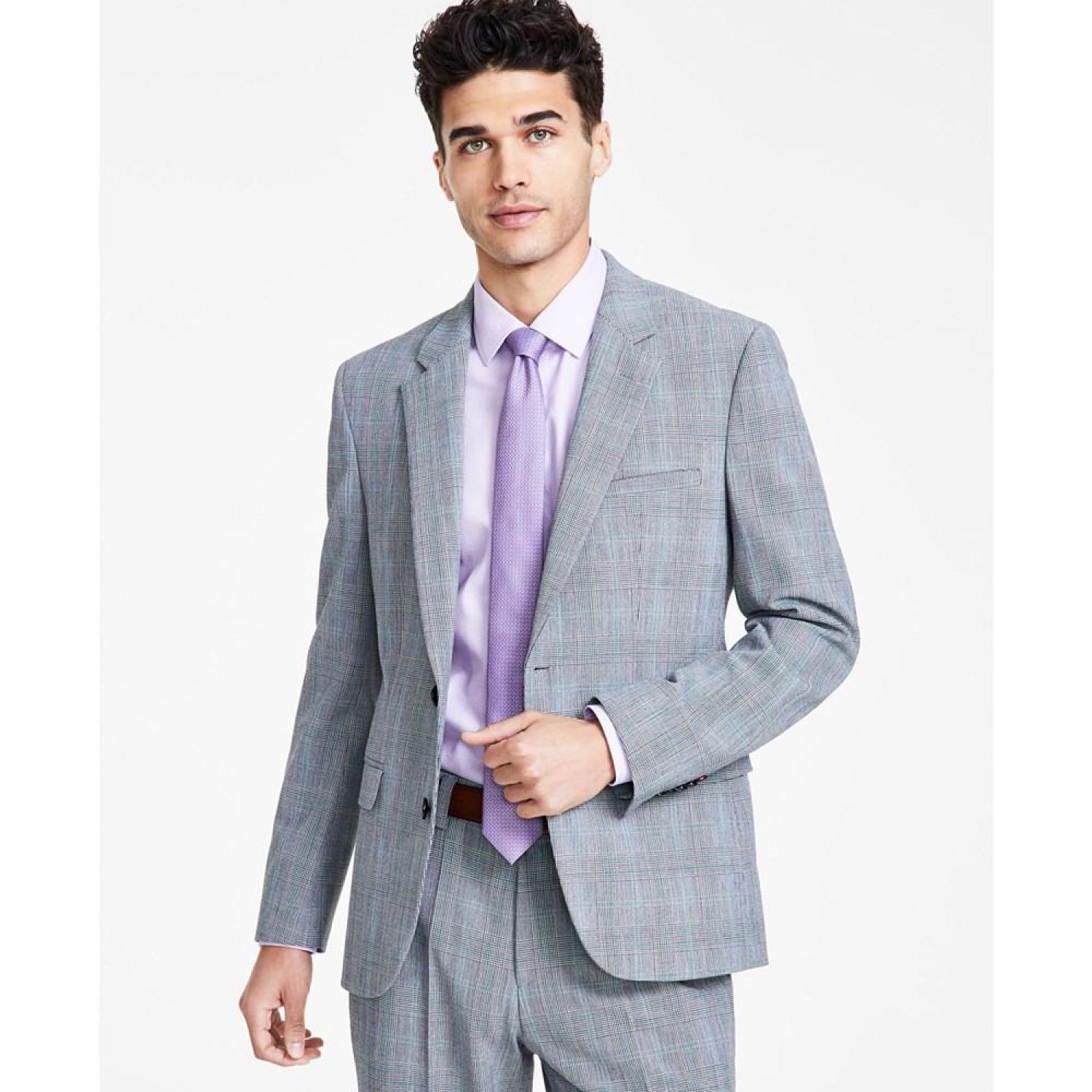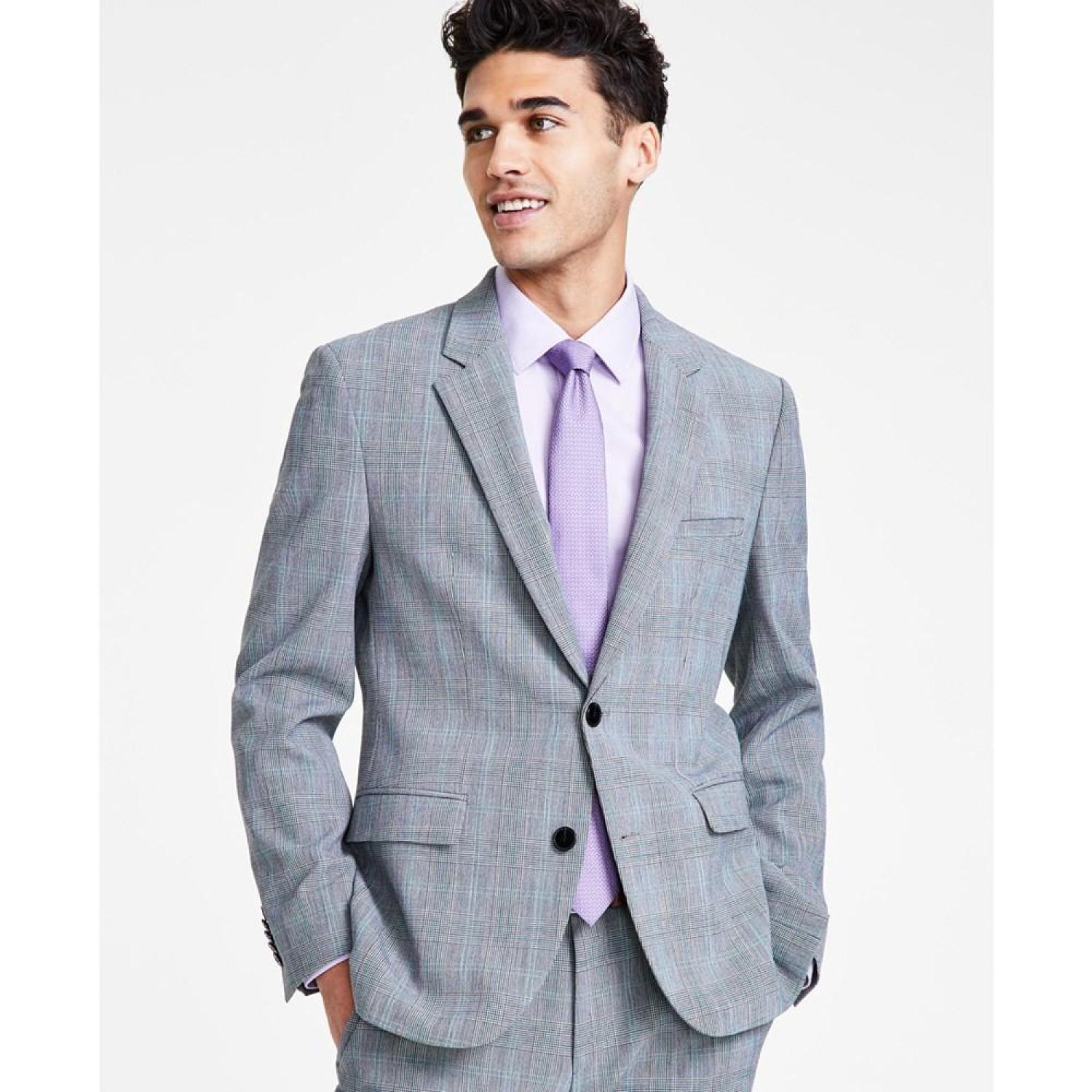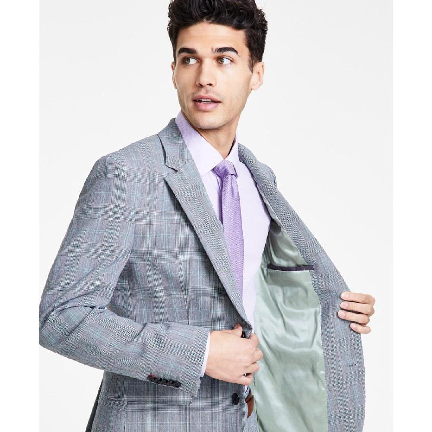 Hugo Boss Men's Slim Fit Gray Plaid Superflex Suit Jacket