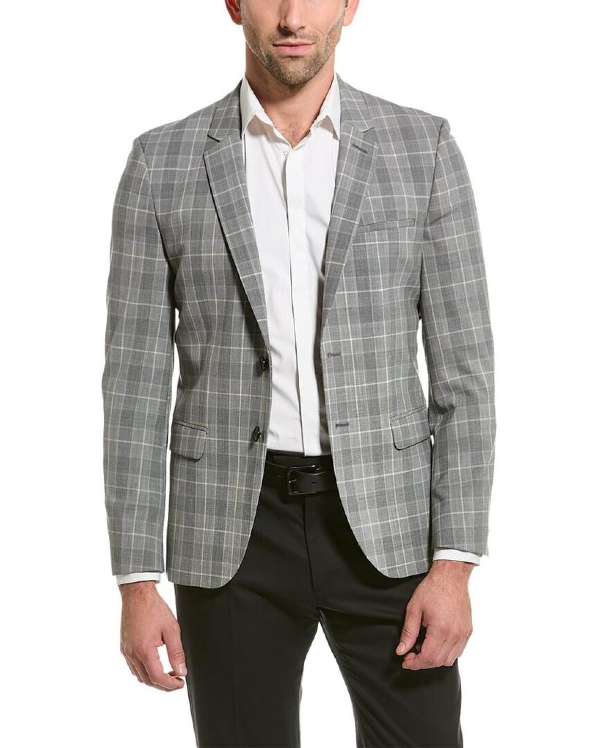 Introducing the HUGO Hugo Boss Wool-Blend Blazer - a timeless piece that combines style, sophistication, and versatility. Crafted from a luxurious blend of 75% virgin wool, 22% polyester, and 3% elastane, this blazer embodies the finest quality and comfort. The soft grey color adds a refined touch to any outfit, making it perfect for both formal and casual occasions.With its notch lapel, left chest pocket, dual front pockets, button cuffs, and side vents, this blazer exudes elegance and attention to detail. The two-button front adds a classic flair, while the impeccable tailoring ensures a flattering fit.Measuring approximately 27.5 inches from shoulder to hem, this blazer provides a sleek and polished silhouette. The model is 6'2.5' tall and is wearing a size 38R, but please note that measurements may vary slightly by size.Designed by HUGO Hugo Boss, a renowned brand synonymous with contemporary style and superior craftsmanship, this blazer is a must-have addition to any gentleman's wardrobe. Carefully constructed with quality in mind, this blazer is dry clean only. Embrace sophistication and elevate your style with the HUGO Hugo Boss Wool-Blend Blazer. Imported for your convenience, it effortlessly combines the best in fashion and functionality.