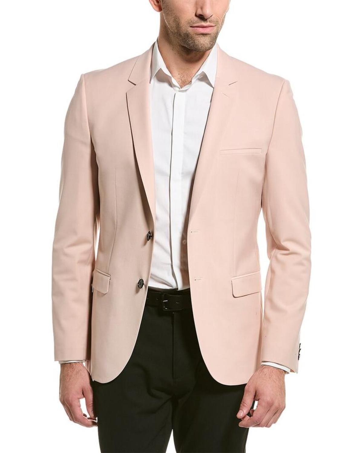 Introducing the stylish and sophisticated HUGO Hugo Boss Wool-Blend Jacket. This elegant jacket is perfect for the modern gentleman who values both comfort and fashion. Crafted by the renowned brand HUGO Hugo Boss, this jacket is designed to impress. It falls under the category of men's clothing, specifically suits, sport coats, and sport coats blazers. With its attractive pink color, it adds a touch of personality to any outfit.Measuring approximately 28 inches from shoulder to hem, this jacket offers a perfect fit. The model showcasing it is 6'2.5' tall and is wearing a size 40R, ensuring that it suits various body types. Please note that measurements may slightly vary by size.The design details of this jacket are exceptional. It features a notch lapel, a left chest pocket, and dual front pockets, providing both style and functionality. The button cuffs add a refined touch, while the side vents ensure comfort and ease of movement. The HUGO Hugo Boss Wool-Blend Jacket boasts a two-button front closure, allowing for effortless wear and a tailored look. Made from a premium blend of 74% wool, 22% polyester, and 4% elastane, it offers the perfect balance of warmth and flexibility. To maintain its pristine condition, the jacket should be dry cleaned only. It is important to follow the care instructions to ensure its longevity. Elevate your wardrobe with this stunning HUGO Hugo Boss Wool-Blend Jacket. Imported with expert craftsmanship, it combines European style and contemporary elegance. Order yours today and make a fashion statement that lasts.