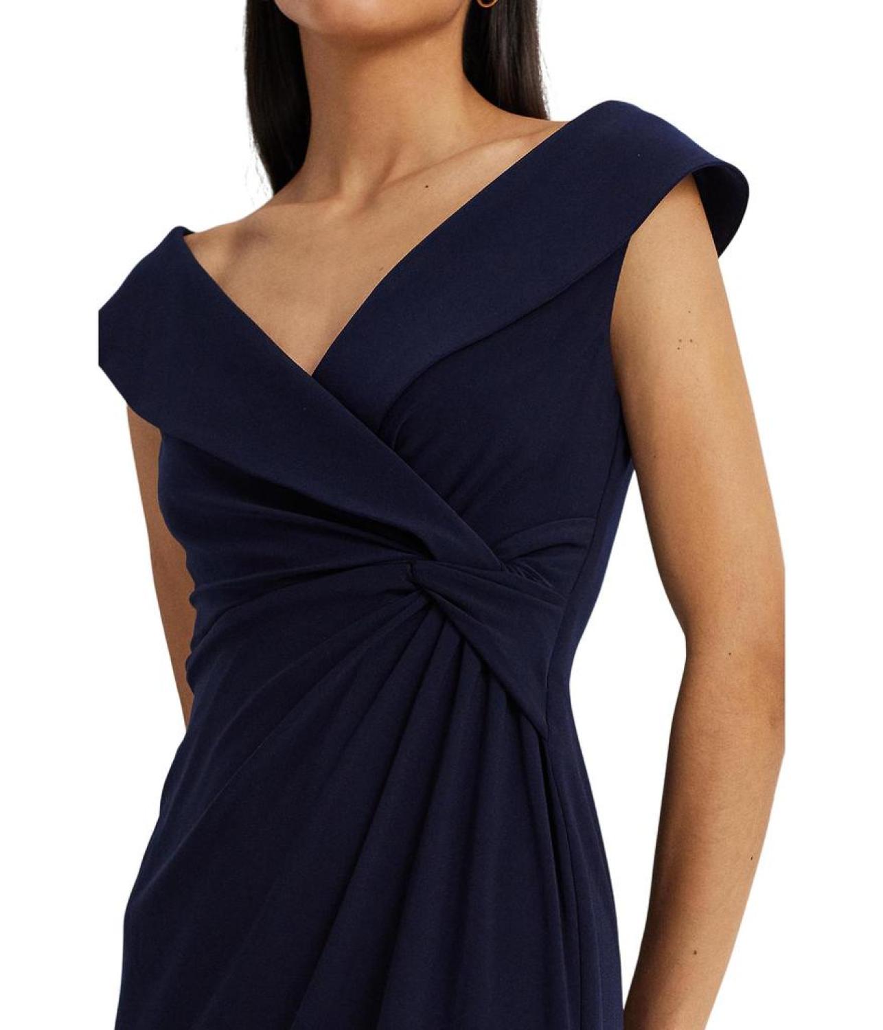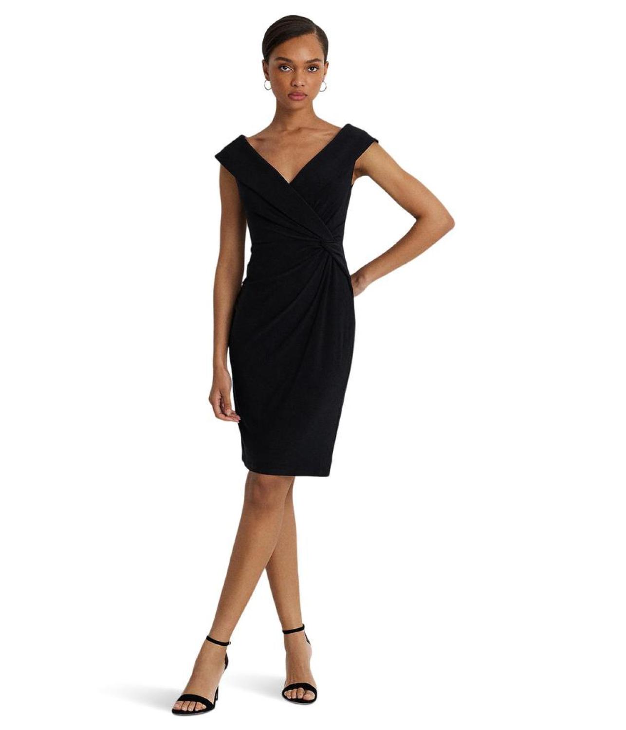 • Be your own kind of beautiful wearing the LAUREN Ralph Lauren® Jersey Off-the-Shoulder Cocktail Dress. Tailored for the modern woman, it features foldover collar, sleeveless style, and twisted detail at waist that gives you a petite look.