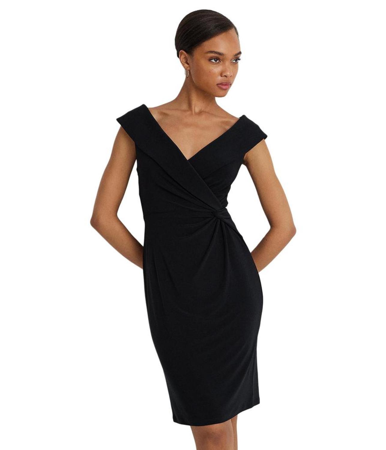 Be your own kind of beautiful wearing the LAUREN Ralph Lauren® Jersey Off-the-Shoulder Cocktail Dress. Tailored for the modern woman, it features foldover collar, sleeveless style, and twisted detail at waist that gives you a petite look.