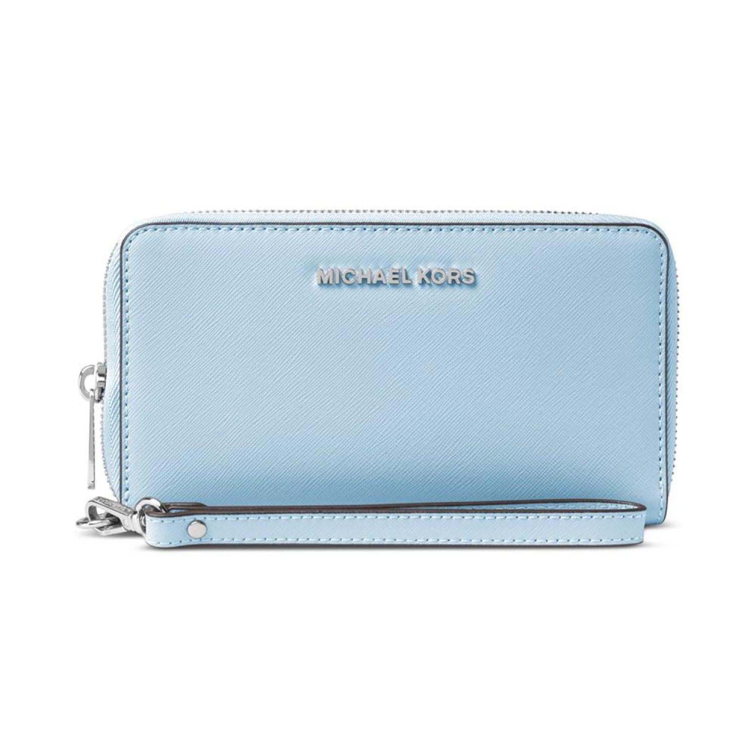 - Keep it all together in classic MK style with the Jet Set Large Multifunction Phone Case by MICHAEL Michael Kors. 6"W x 3-1/2"H x 3/4"D 7"L wrist strap Zip-around closure Gold-tone hardware Interior ID window, 4 card slots, zip coin pocket, bill compartment & cell phone pocket Fits all phones Leather Spot clean Imported
