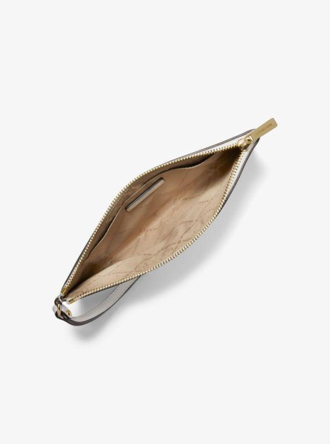 • Featuring a perforated geometric design, this wristlet is large enough to accommodate the basics yet small enough to fit into your everyday tote. Its sleek profile makes it easy to dress up or down, and it includes an interior slip pocket that’s perfect for storing your phone. Grab it and go for your next coffee run.