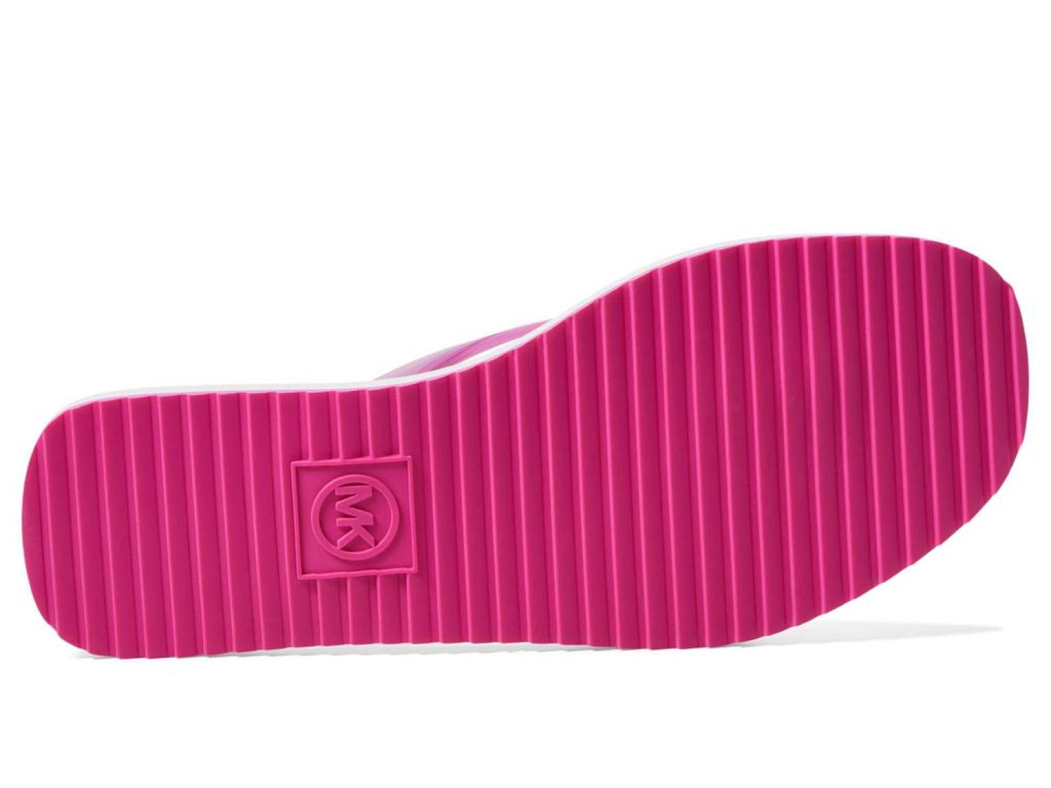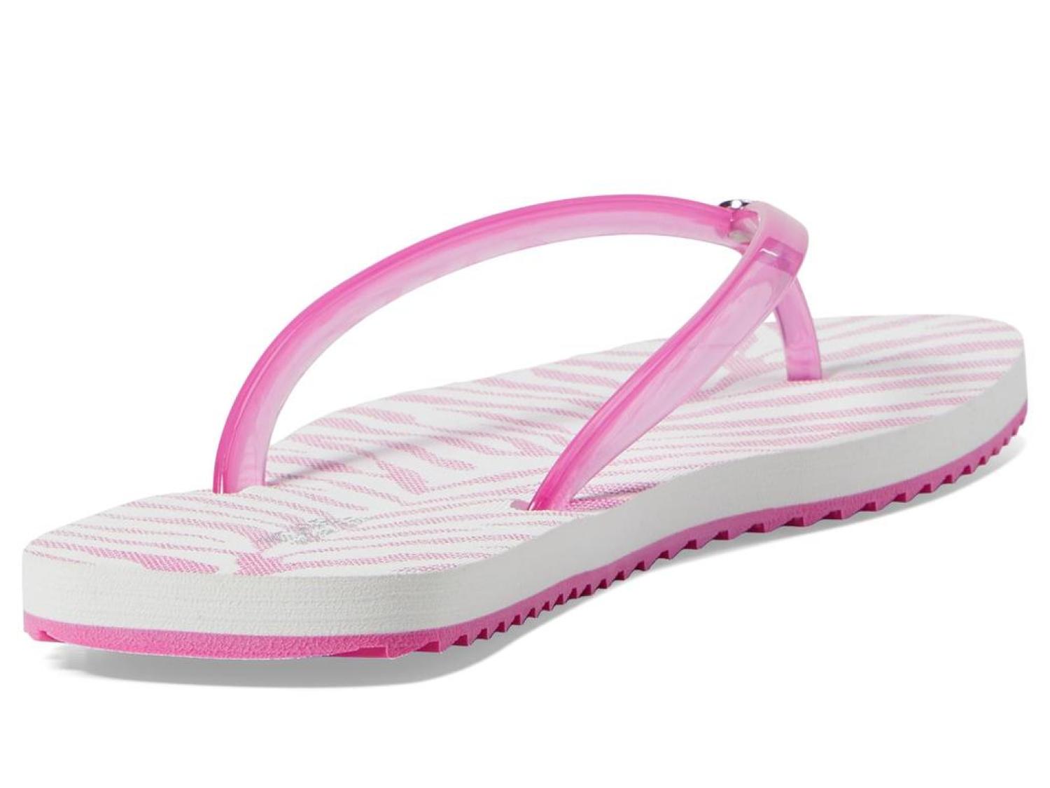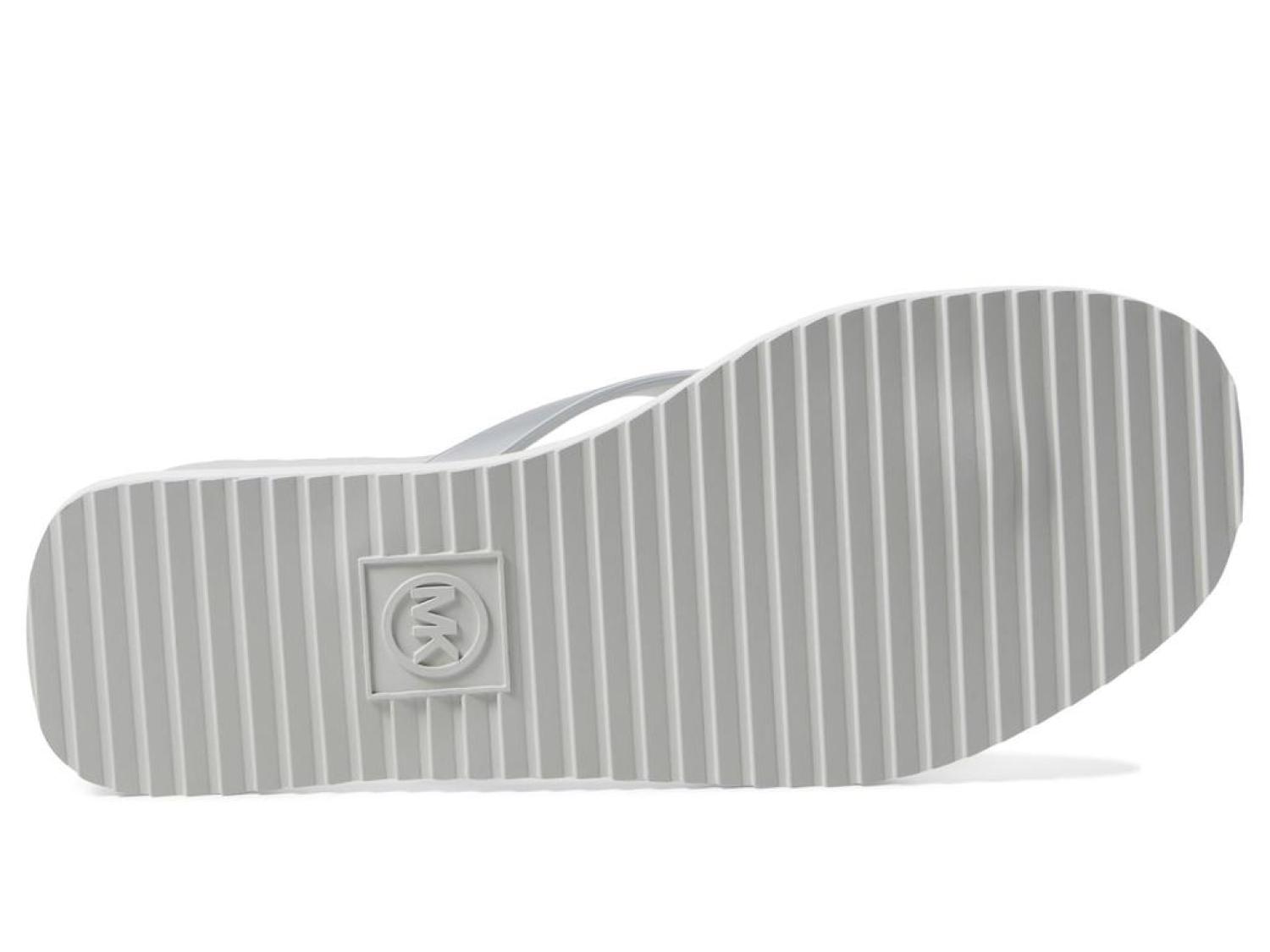 • Let your feet enjoy airy comfort as you wear the lightweight MICHAEL Michael Kors® Jinx Flip Flops. The toe-post thong features PVC upper with unlined construction and zebra-printed cushioned rubber footbed, making poolside walks perfectly comfy.