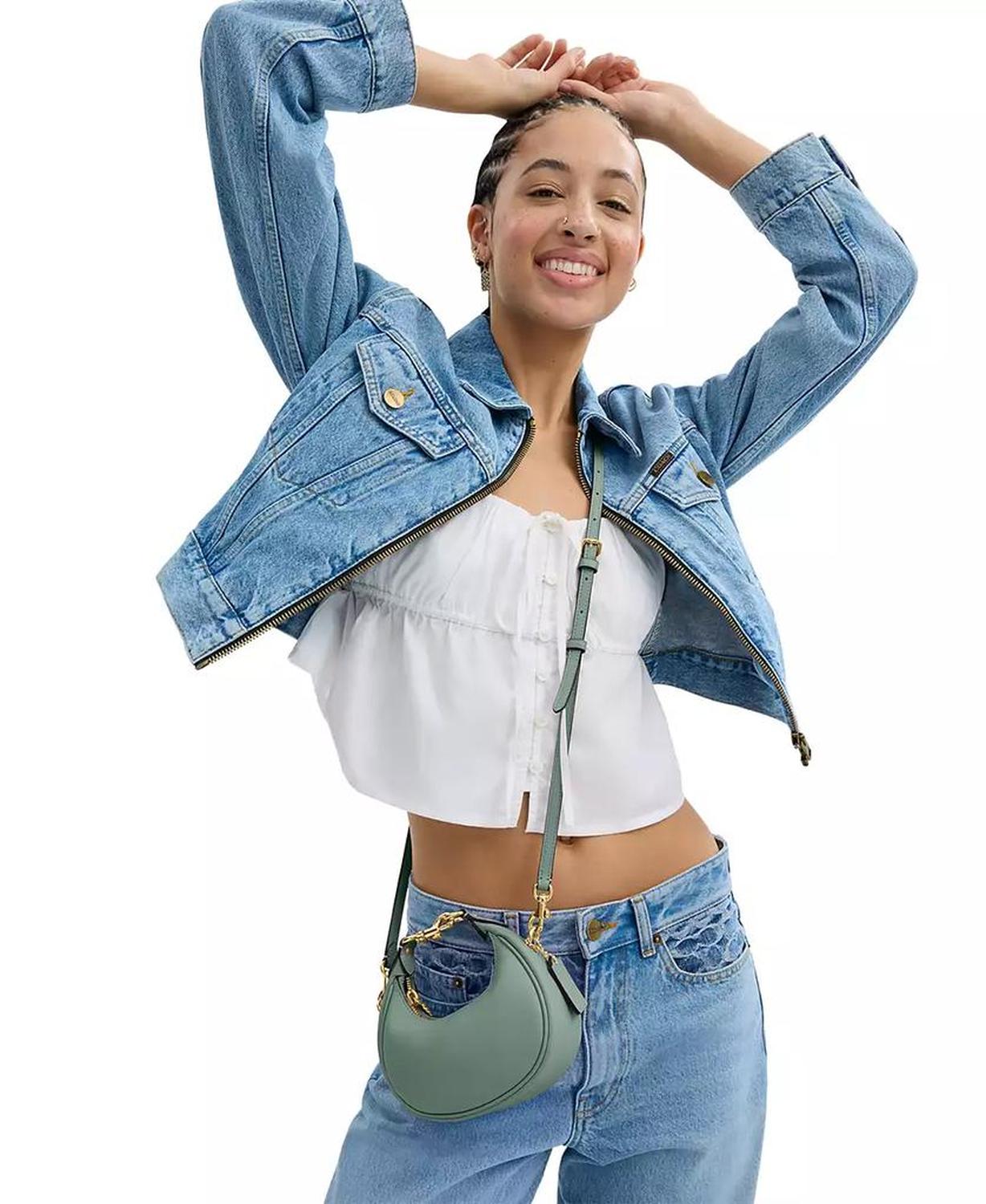 • Ahead of the curve, our Jonie is a rounded style that's part crescent silhouette, part hobo and all attitudes. The compact style is crafted of buttery soft glove tanned leather and finished with a secure zip-top closure detailed with our C hardware.