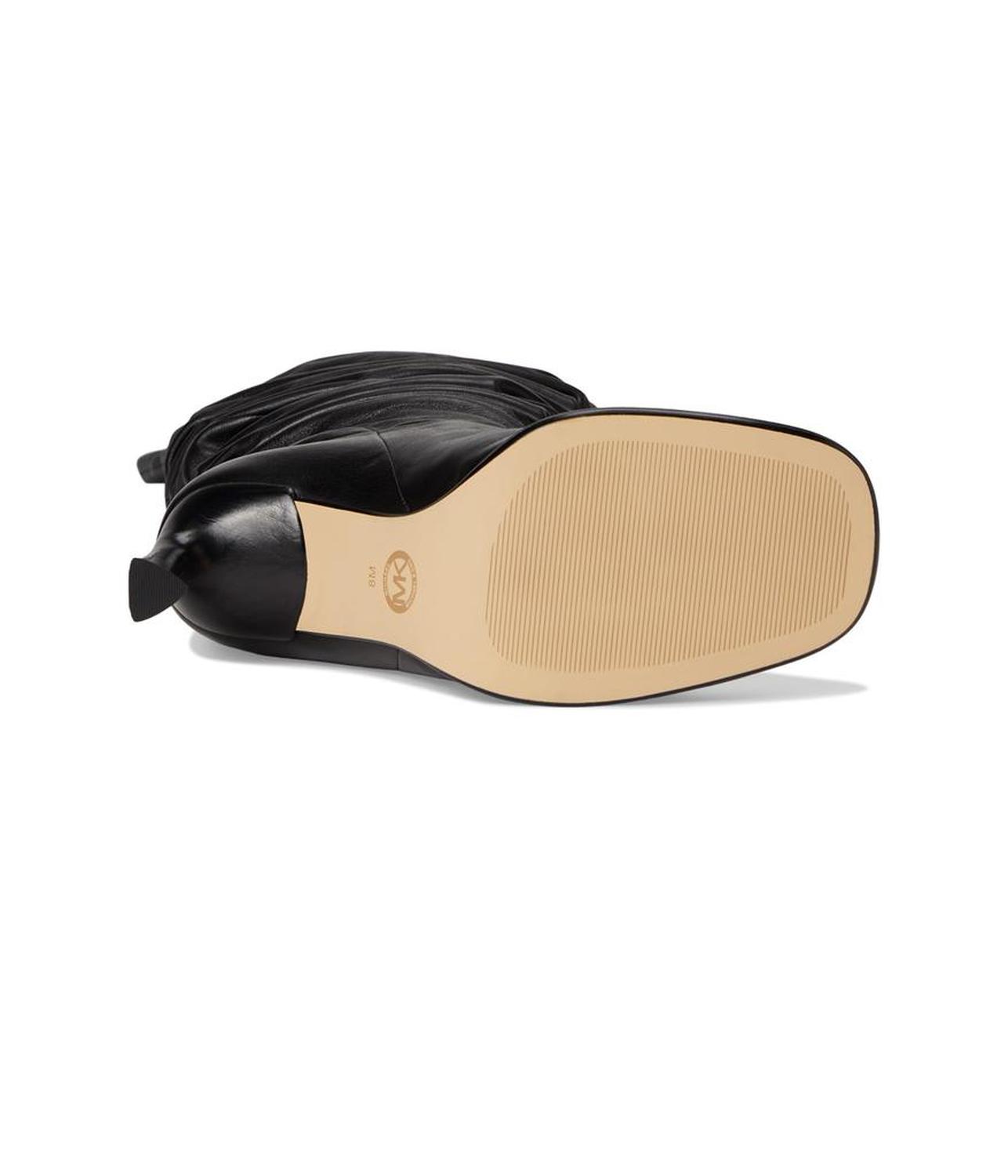 Make yourself known styling these MICHAEL Michael Kors® Kelsea Slouchy Boots. These thigh-high, pull-on boots are designed with a luxurious leather upper and a smooth polyester satin lining that ensures a comfortable slouchy effect. The striking square toe and extended welt add a bold touch, while the sleek stiletto heel elevates your look with every step. Perfect for making a statement, these knee-high boots seamlessly blend fashion and function with a rubber outsole and synthetic insole, making them your go-to for a polished, runway-ready style this season.