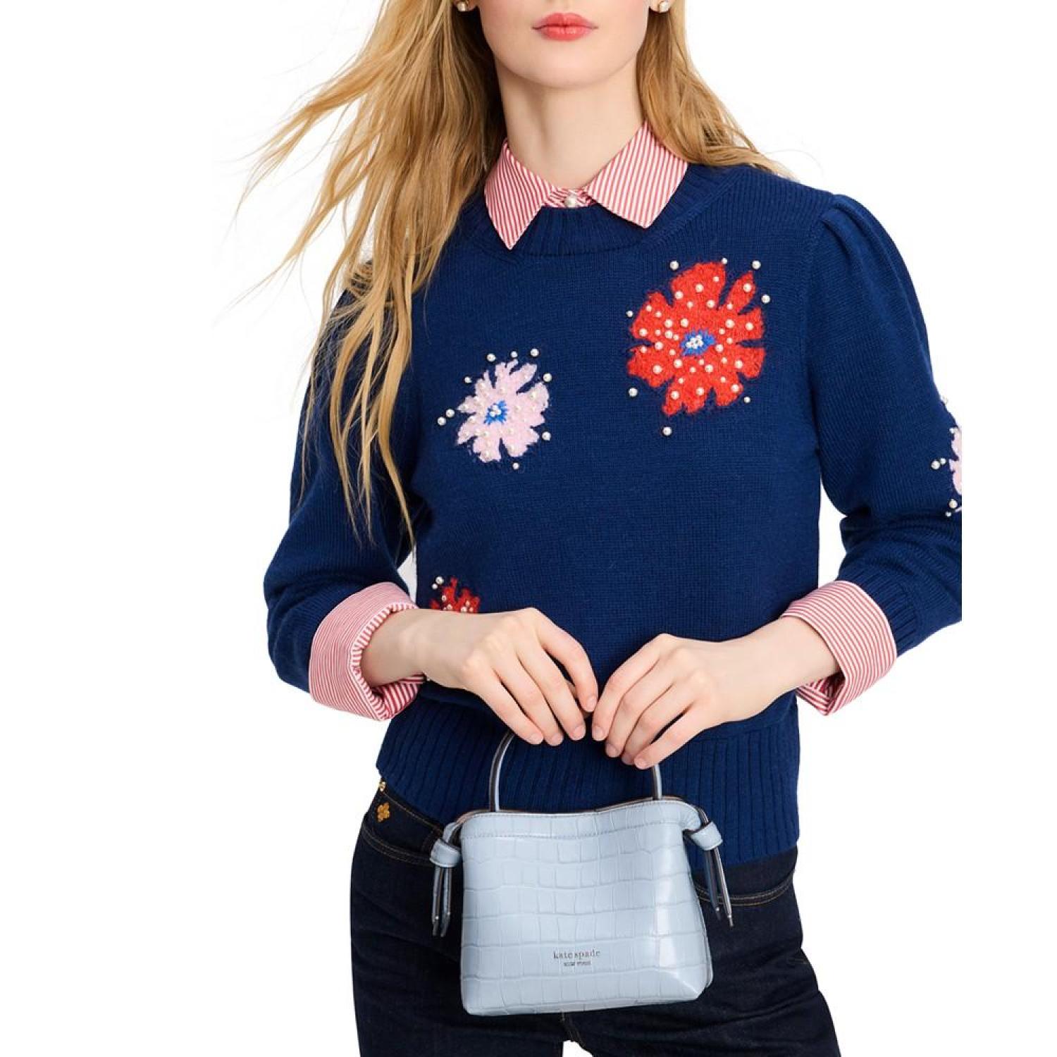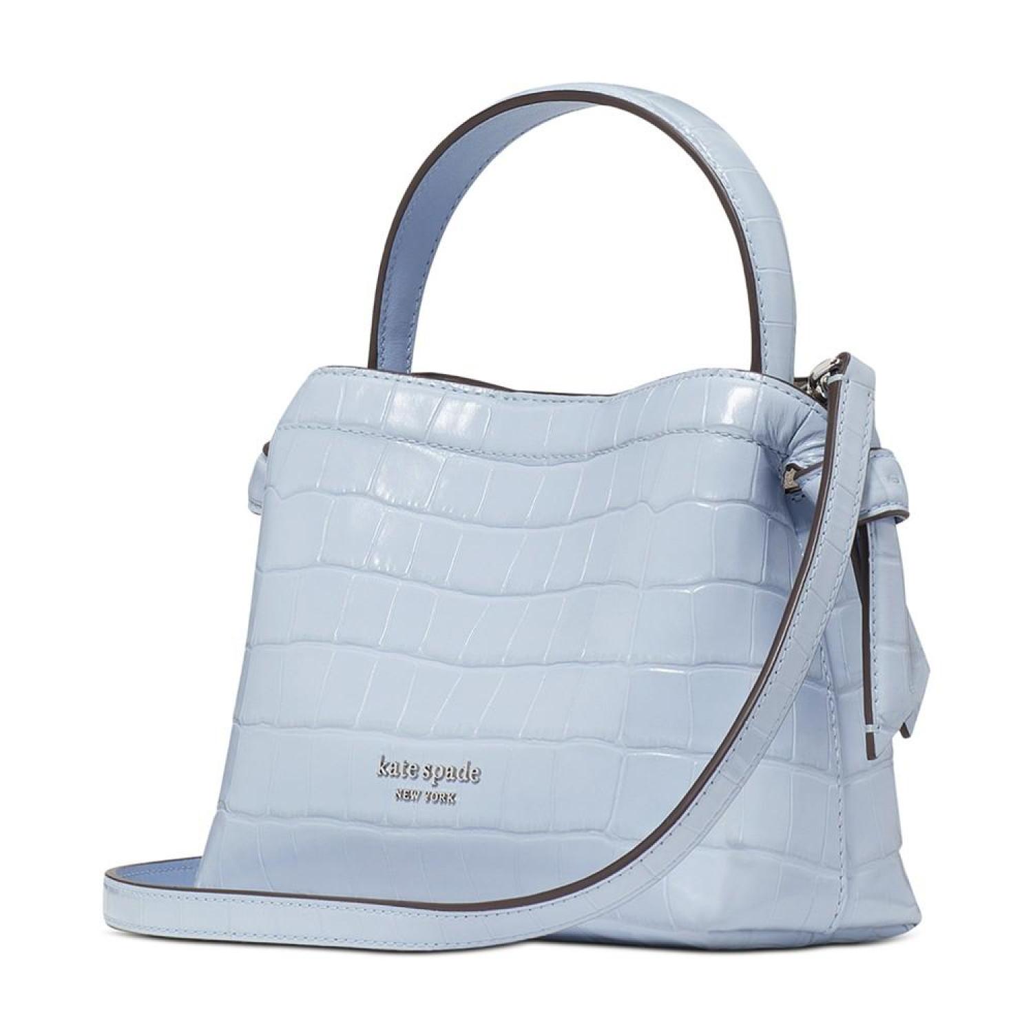 The Knott crossbody tote is here in a compact new size. Made from croc-embossed leather, this versatile style features an optional crossbody strap so you can easily sling it over your shoulder when you find your hands full.	 By kate spade new york.