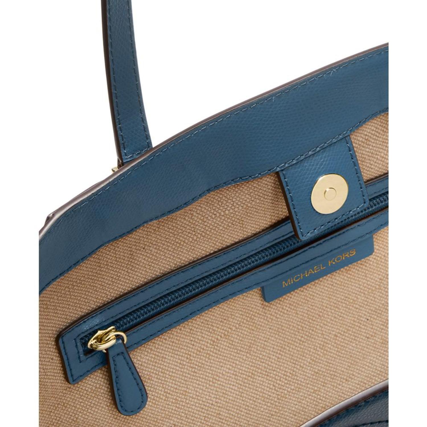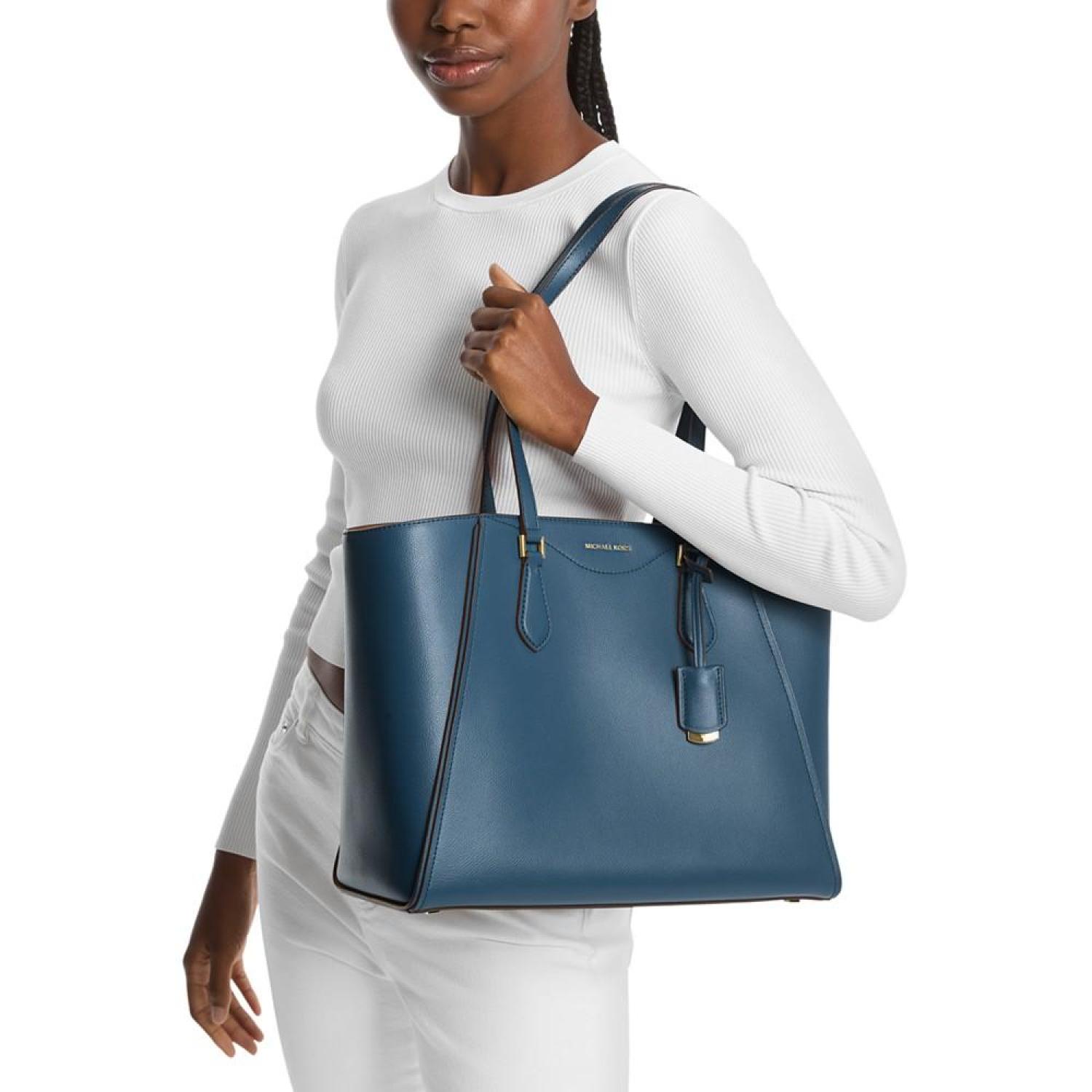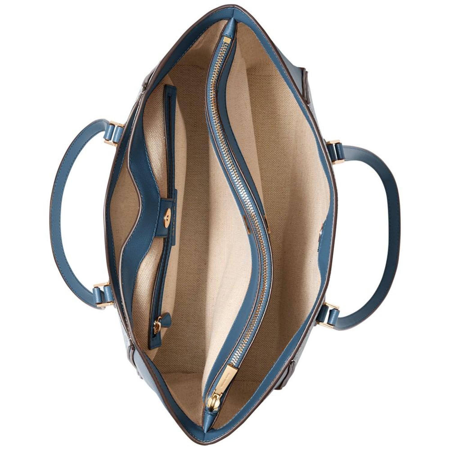 • A sophisticated workday accessory, this leather tote by MICHAEL Michael Kors offers a center zip compartment at the interior and an exterior slip pocket for easy access to essentials.