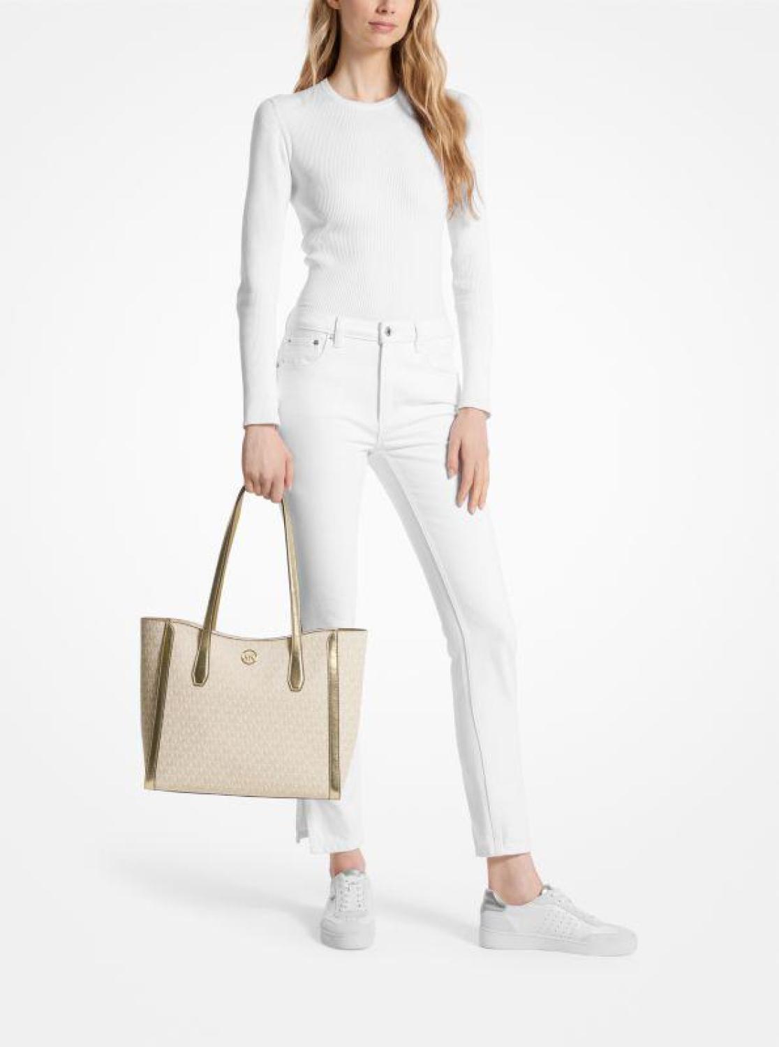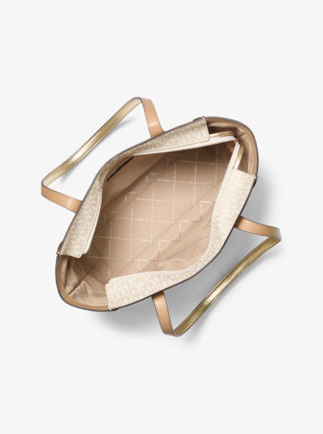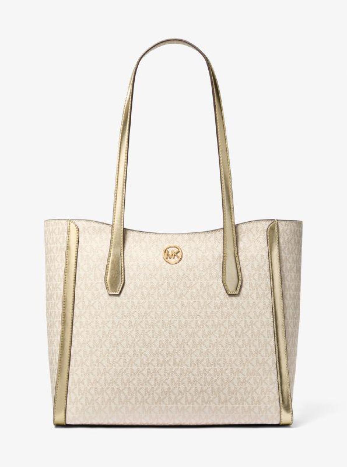 Leida Large Metallic Signature Logo Tote Bag