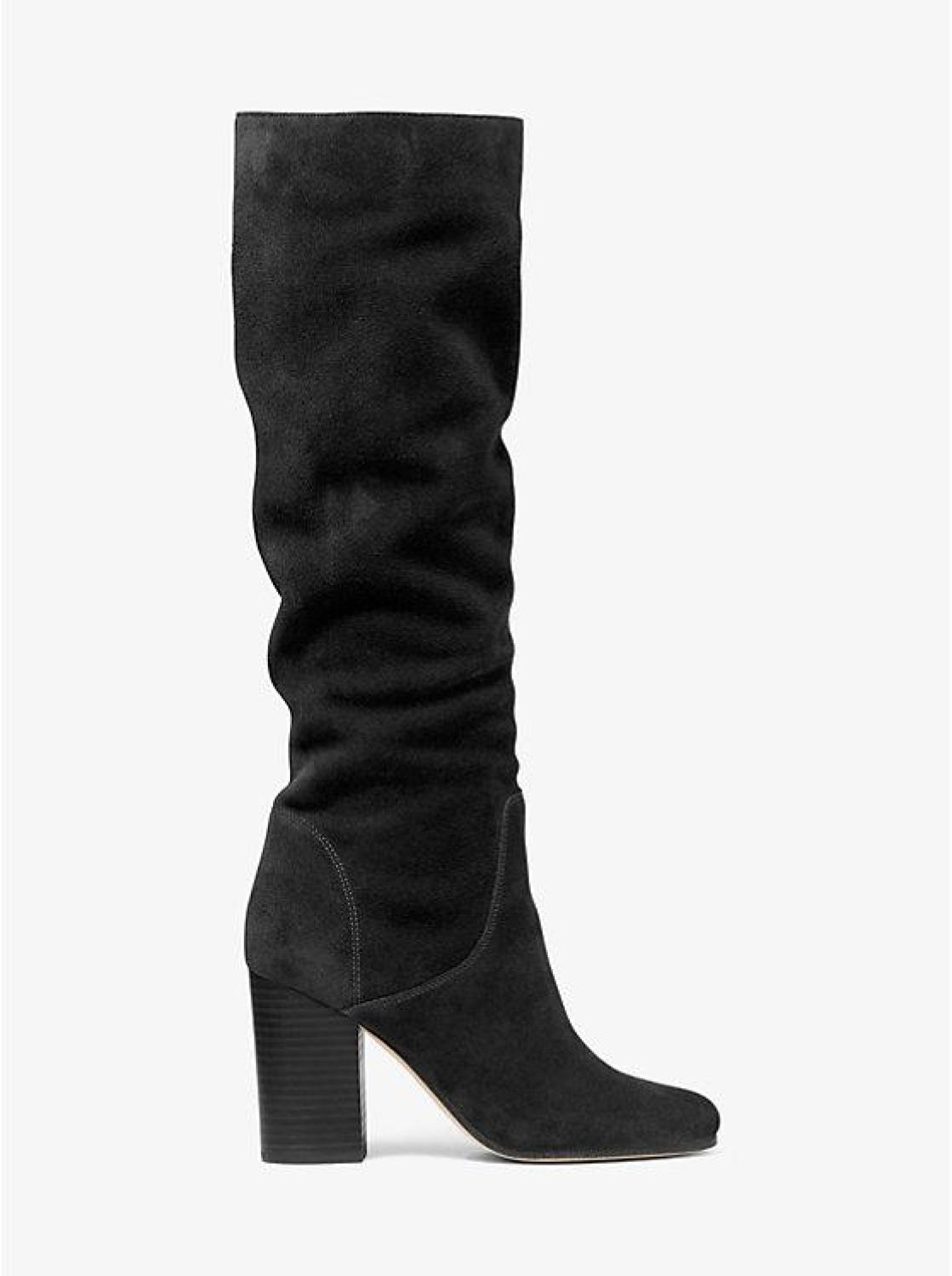 • Strut in style in our Leigh boots. Crafted from rich suede and rendered in a slouchy silhouette, this pair strikes a Bohemian-chic note—the perfect combination of cool and sophisticated. Wear them with the season’s floral-printed midi dresses for an of-the-moment look.