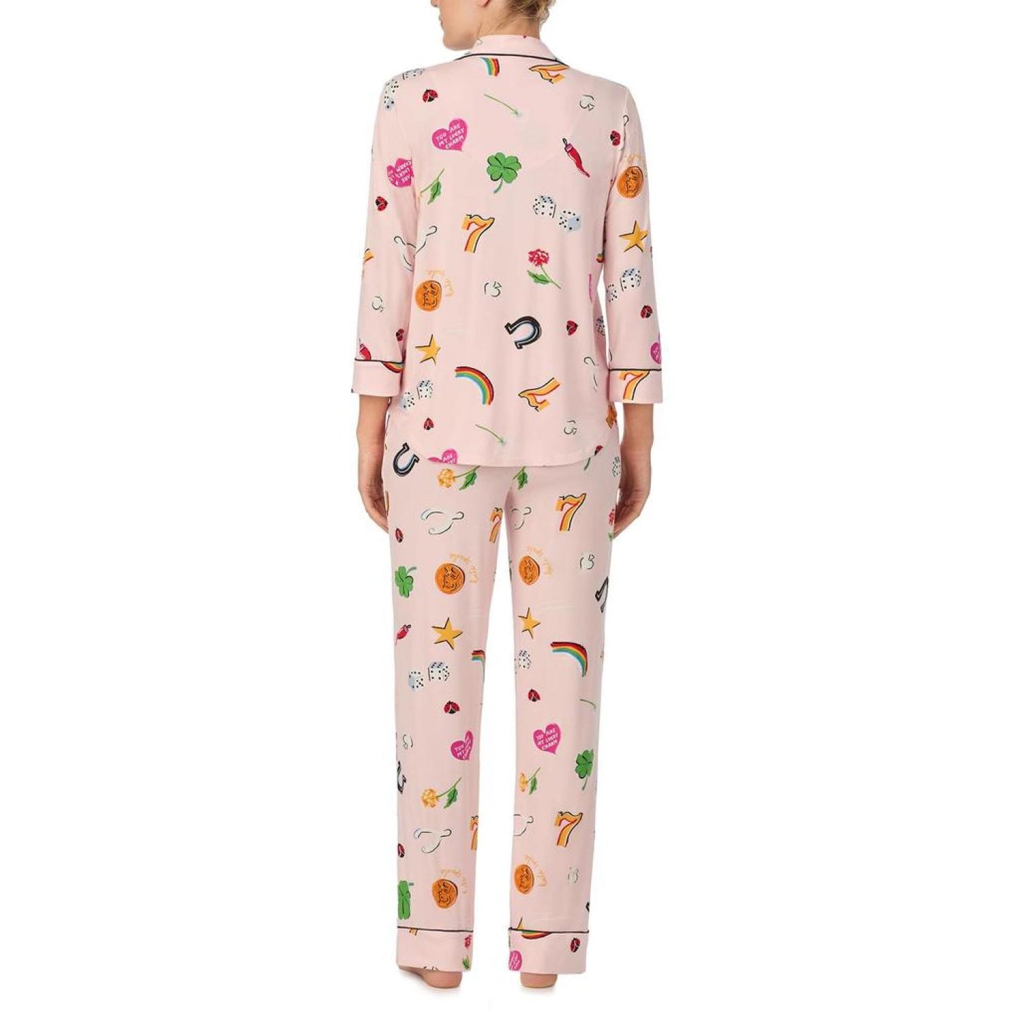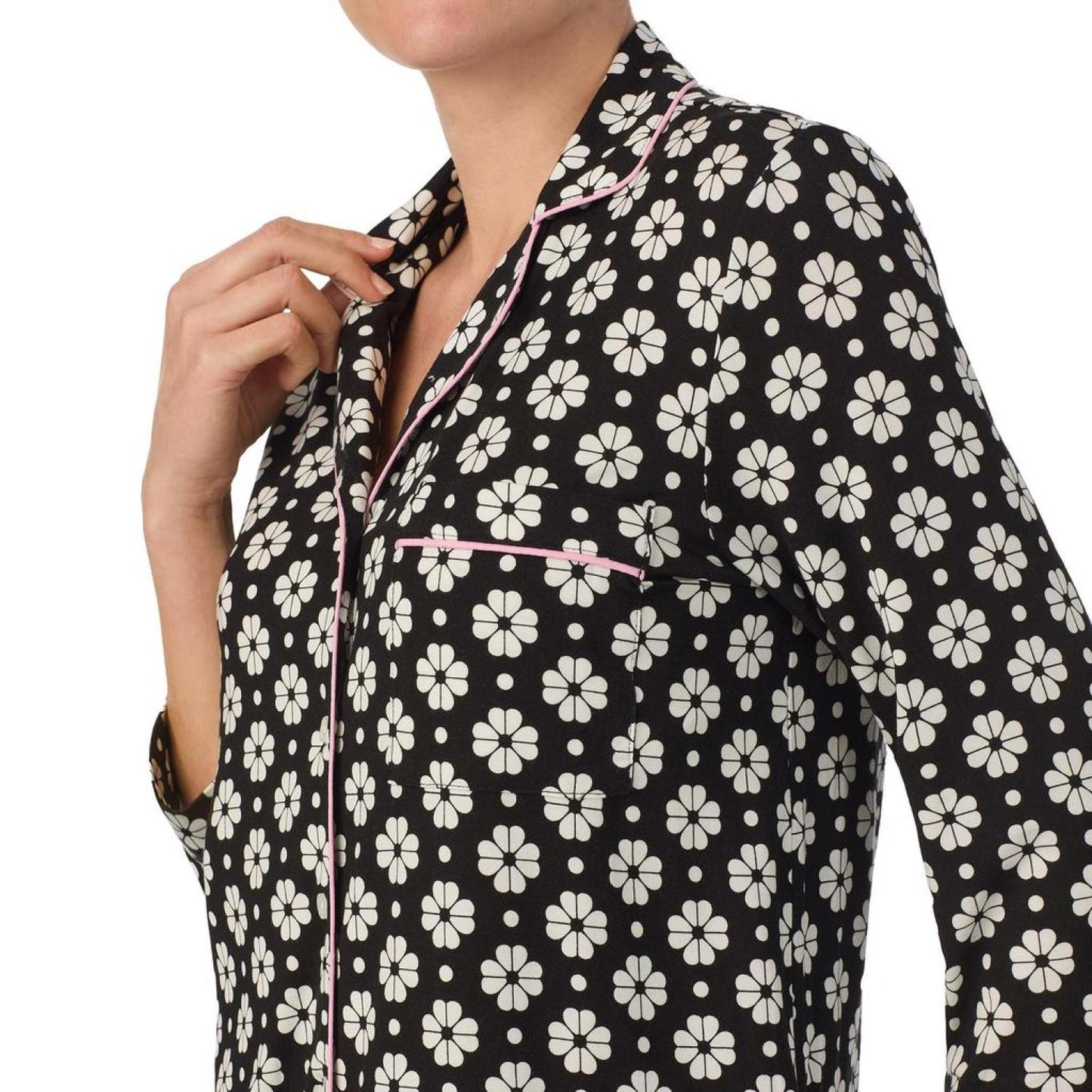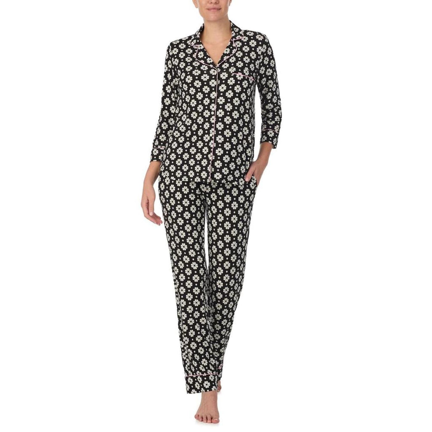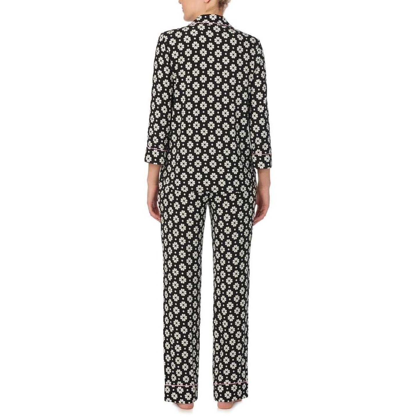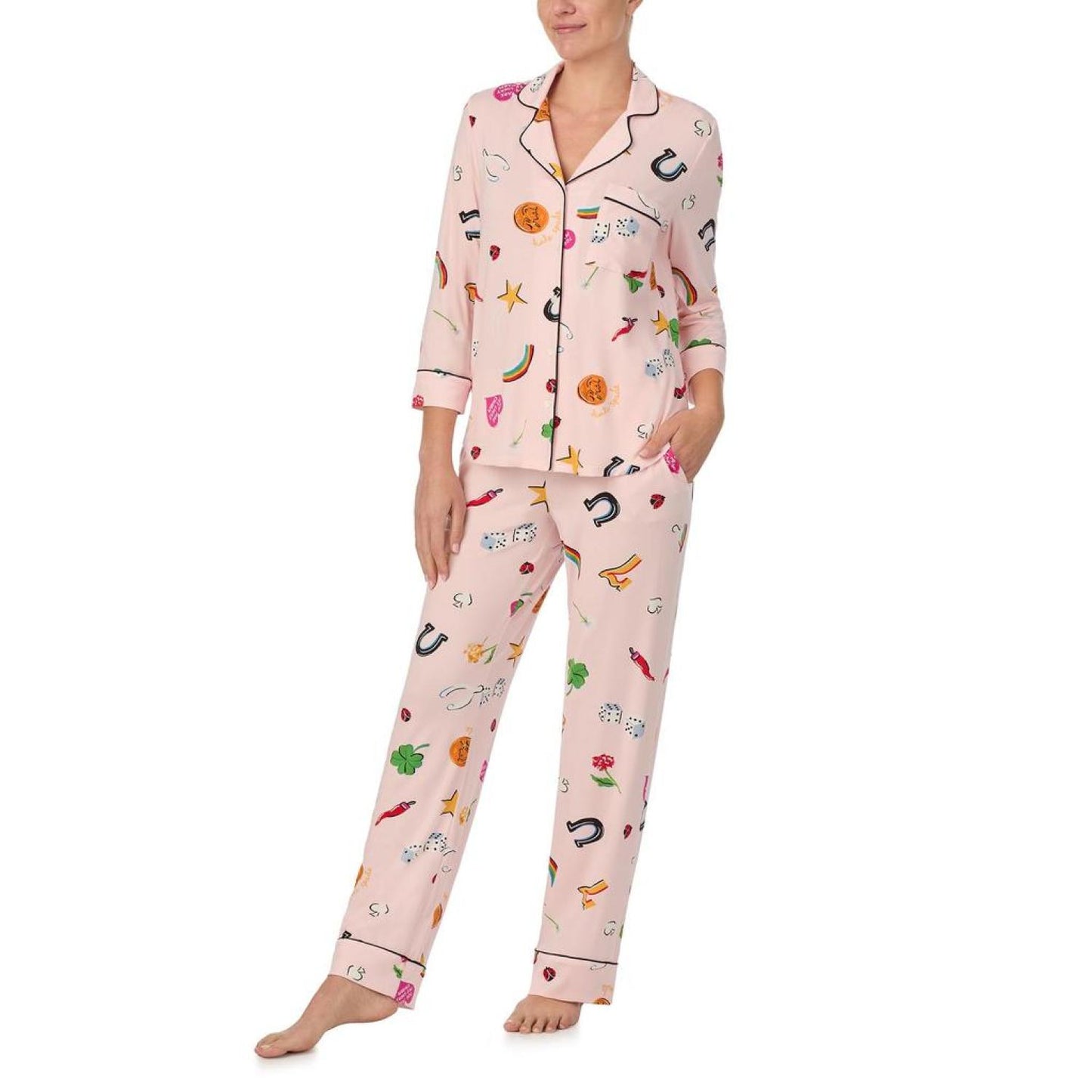 Flaunt a cute look as your dress up for a luxurious nighttime routine wearing the Kate Spade New York® Long 3/4 Sleeve PJ Set. The shirt features a notch collar, full-button closure, one patch pocket on the left chest, and long three-fourth sleeves. The matching pajamas feature an elasticated waistband and a full-length silhouette. The allover quirky print on the shirt and pajamas along with contrasting piping adds style to the look.