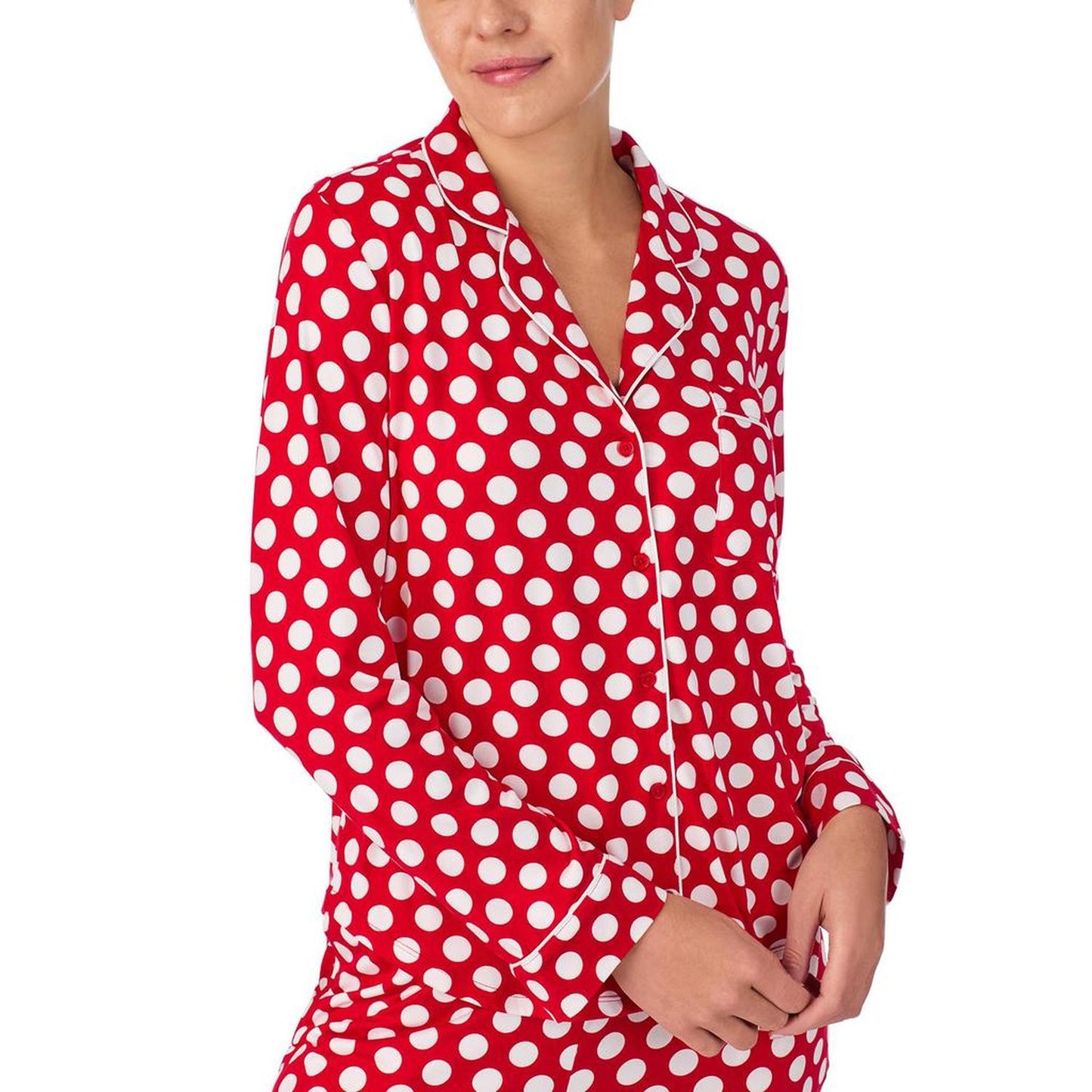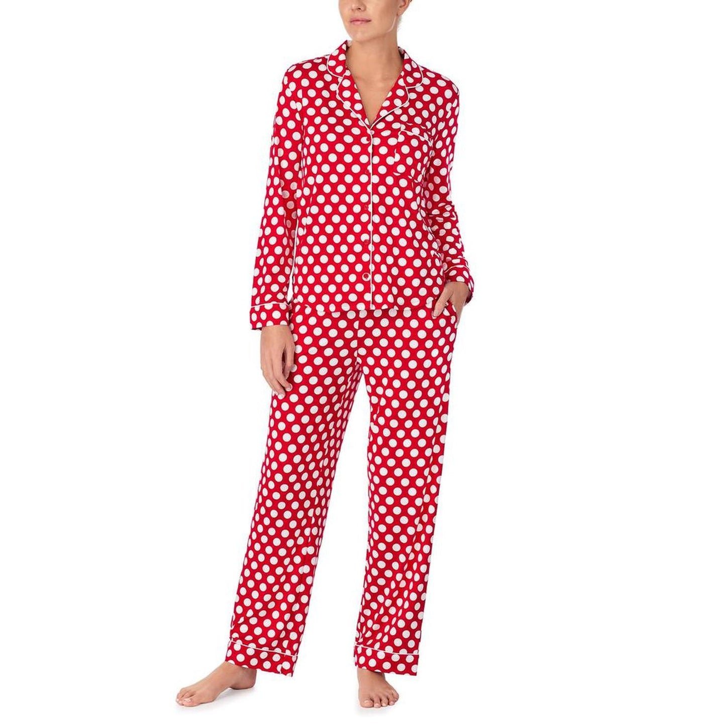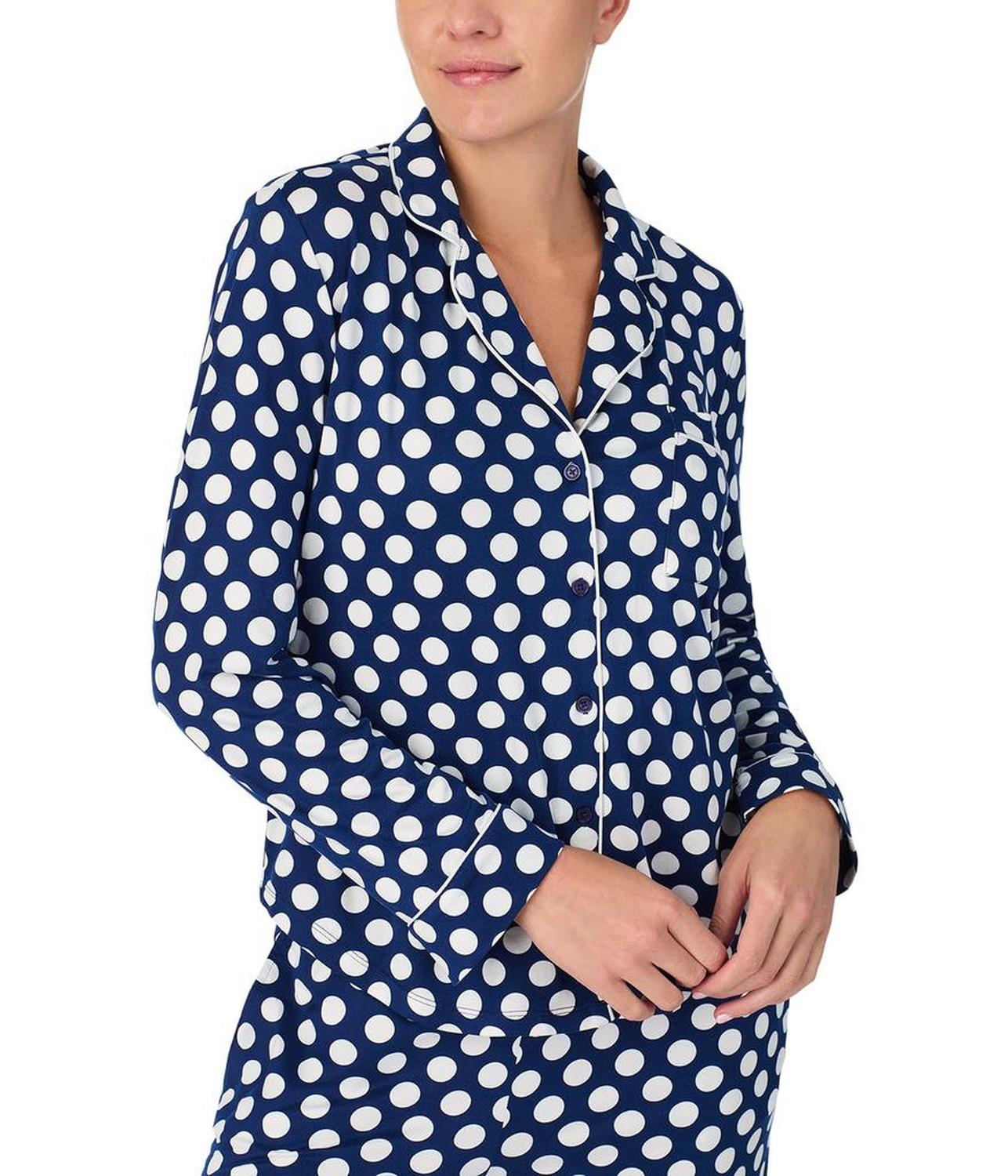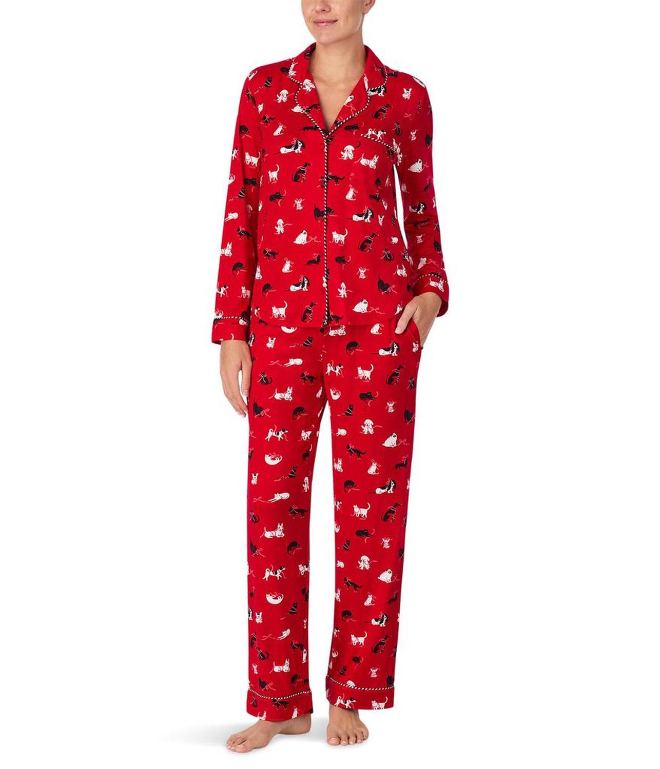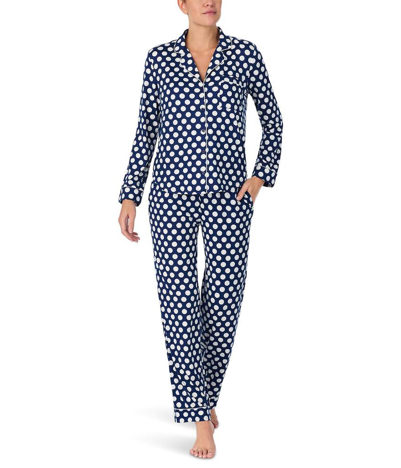 Slip into effortless elegance wearing Kate Spade New York® Cozy Jersey Notch Collar PJ Set! This luxe, long-sleeve ensemble is perfect for lounging in style, offering a regular fit with chic details like a classic notch collar and logo button front. The contrast satin binding around the sleeves, collar, and chest pocket adds a touch of sophistication, while the elasticized waistband ensures all-night comfort. Designed with side seam pockets for added convenience, this set boasts contrast satin binding at the leg openings for a polished finish. A satin locker loop at the back adds a sleek, functional detail, making it your new go-to for relaxation and restful nights.