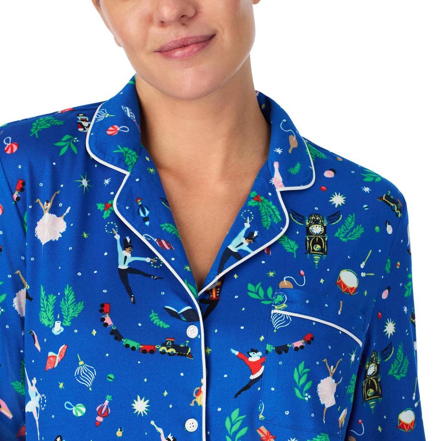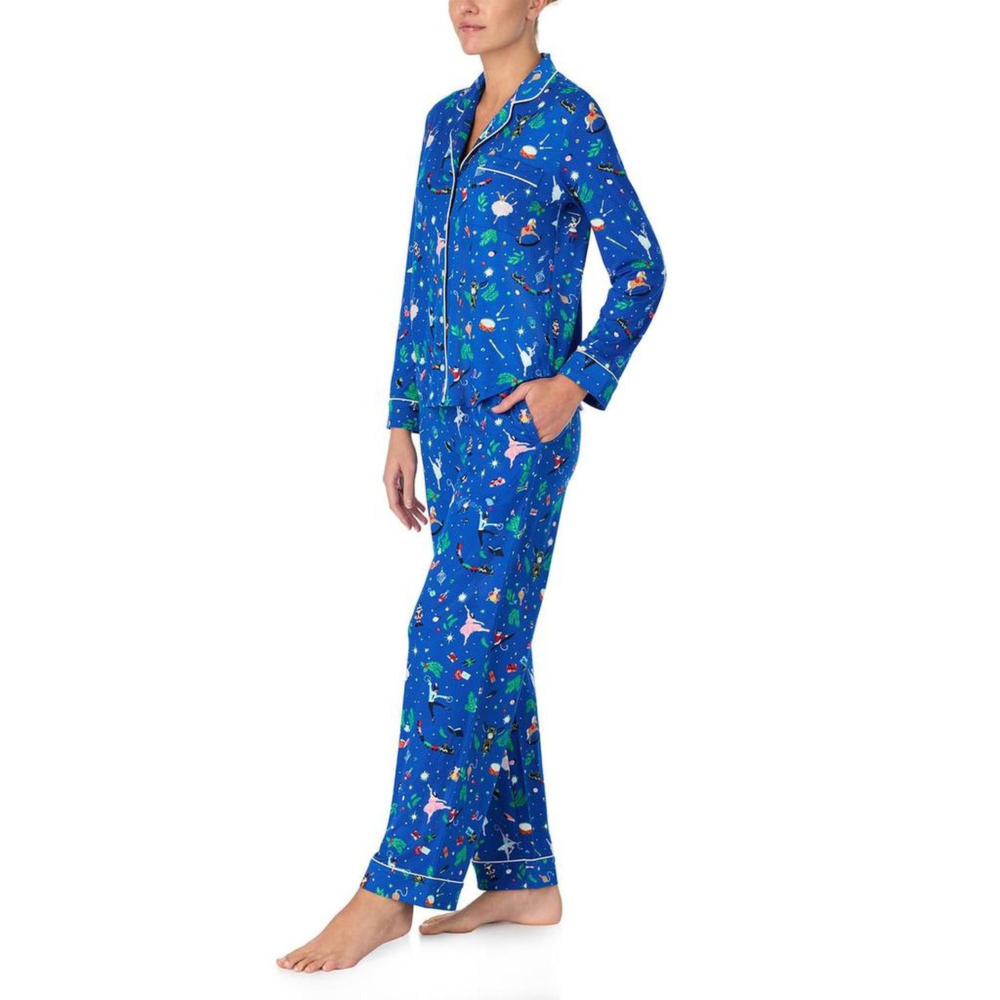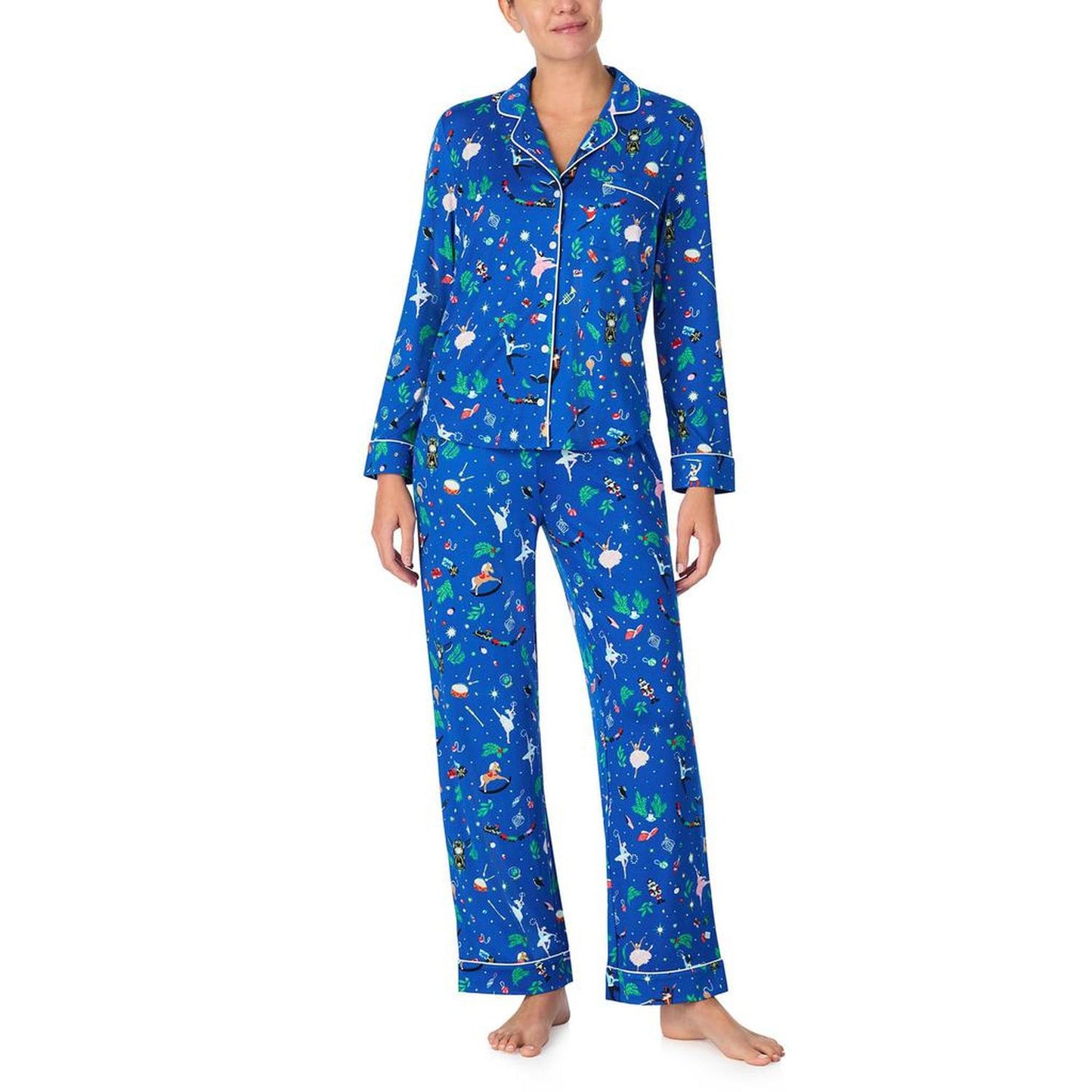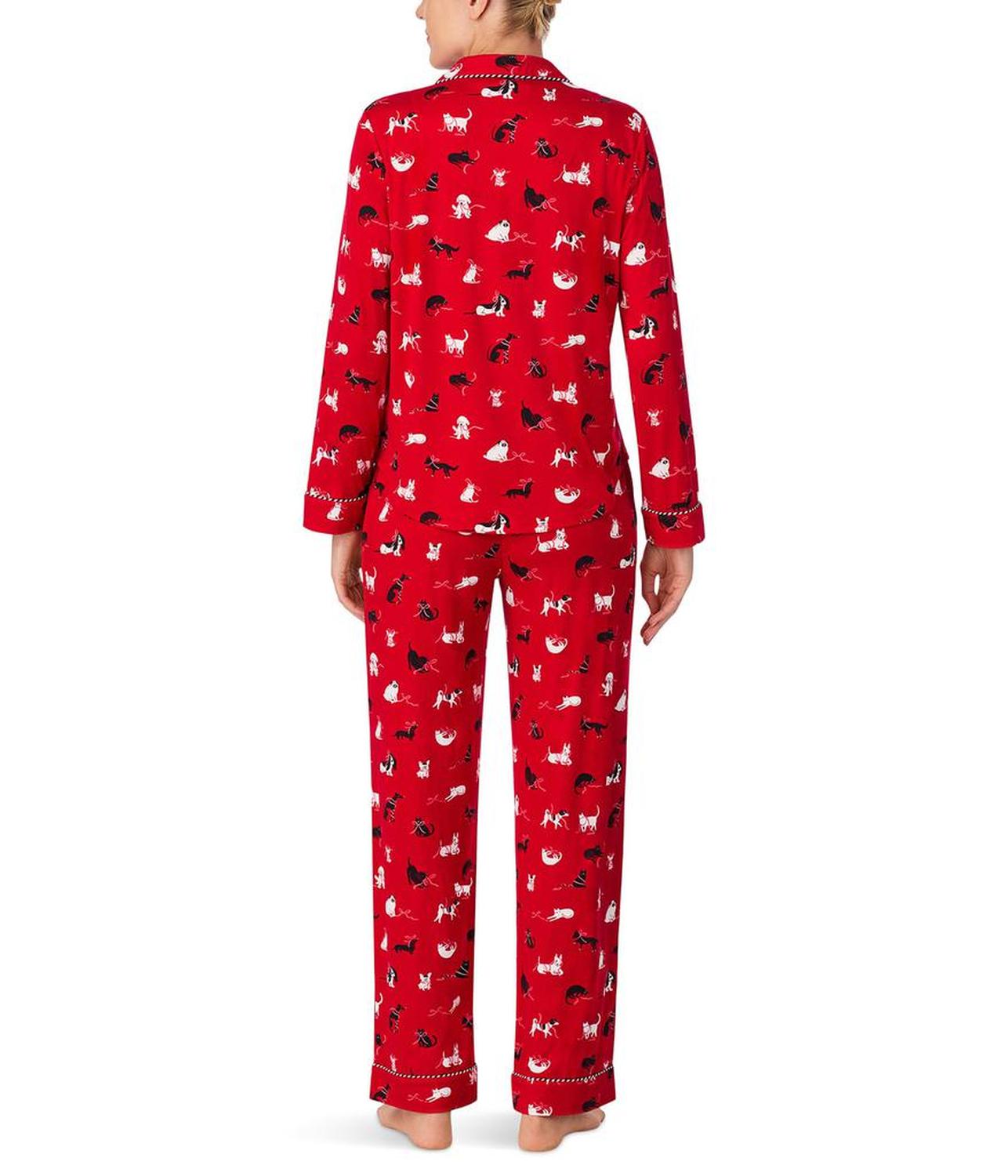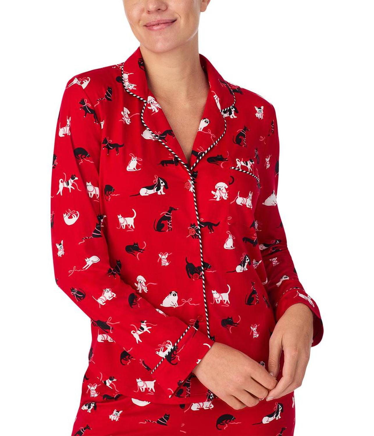 Slip into effortless elegance wearing Kate Spade New York® Cozy Jersey Notch Collar PJ Set! This luxe, long-sleeve ensemble is perfect for lounging in style, offering a regular fit with chic details like a classic notch collar and logo button front. The contrast satin binding around the sleeves, collar, and chest pocket adds a touch of sophistication, while the elasticized waistband ensures all-night comfort. Designed with side seam pockets for added convenience, this set boasts contrast satin binding at the leg openings for a polished finish. A satin locker loop at the back adds a sleek, functional detail, making it your new go-to for relaxation and restful nights.