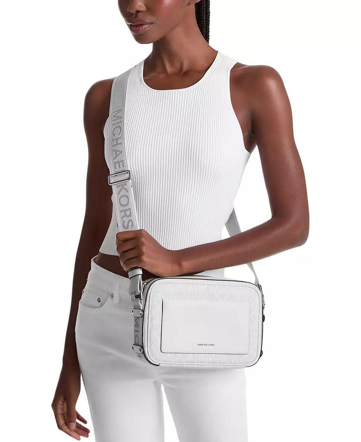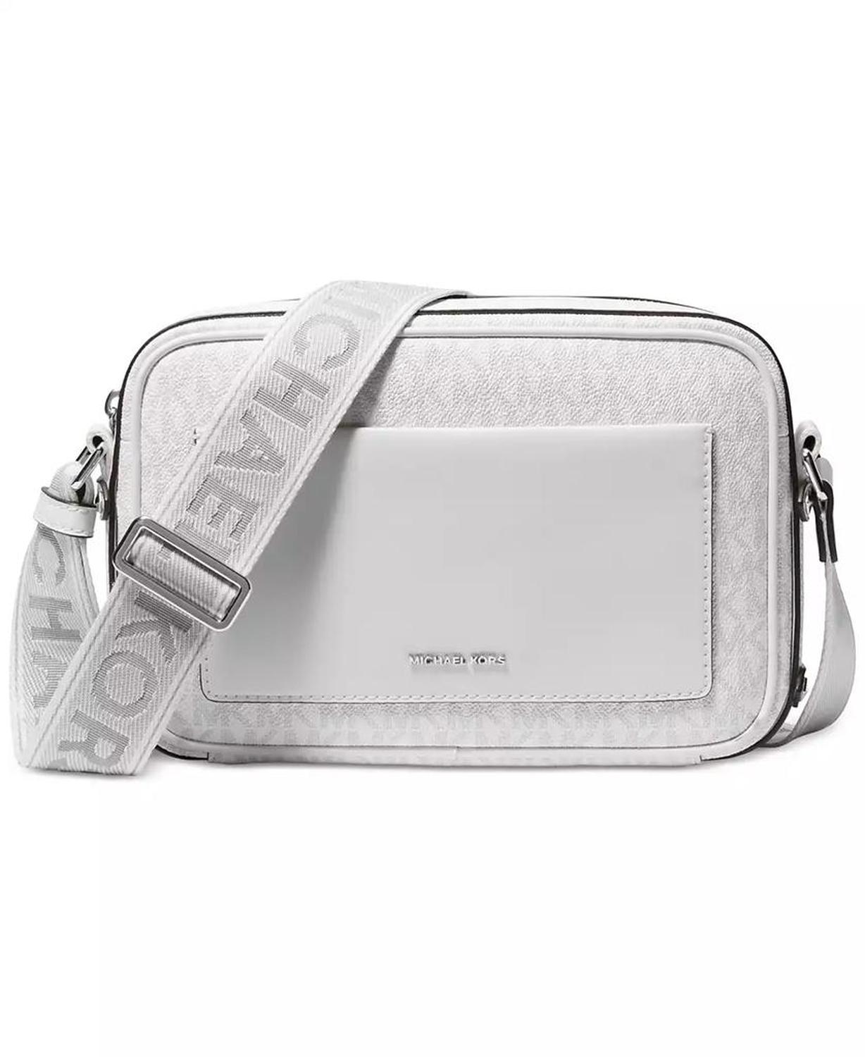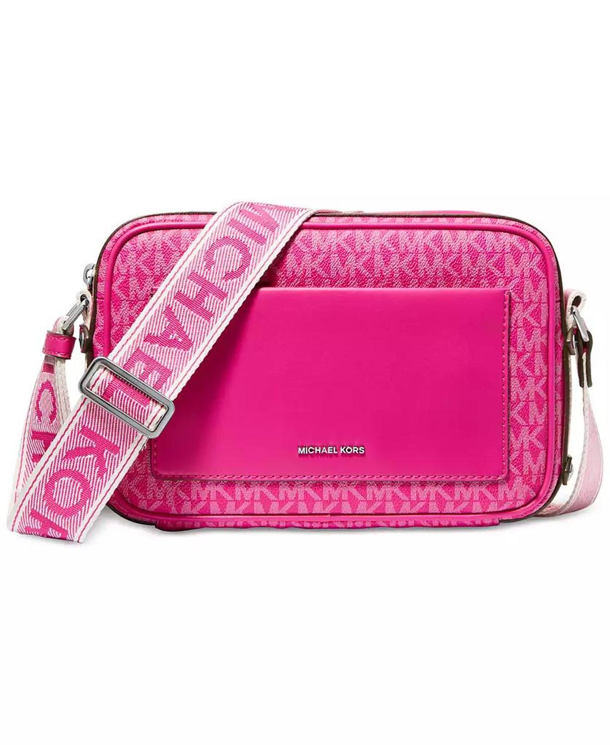 Featuring signature monogram and a classic camera silhouette, this crossbody by MICHAEL Michael Kors is accented with a thick logo strap for an iconic finish.